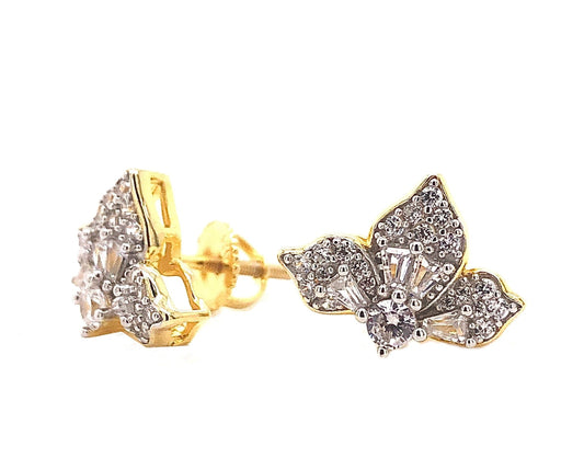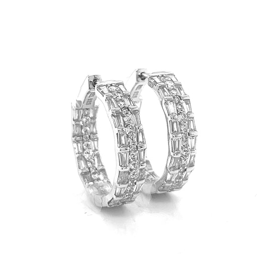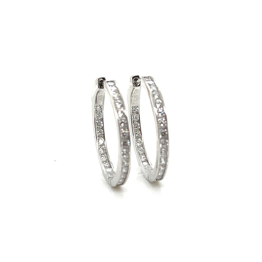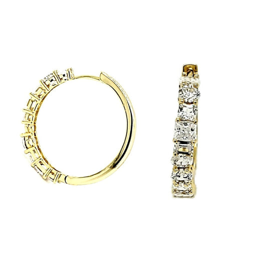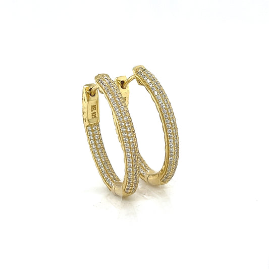 14K Gold Finish over 925 SS Hoop Bling CZ Earrings