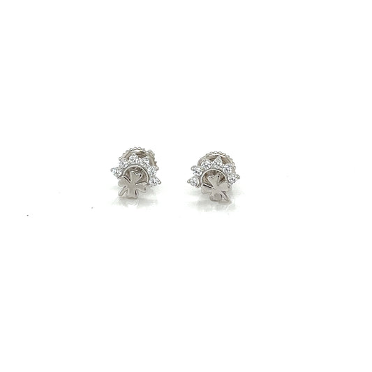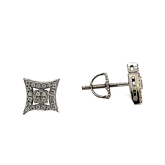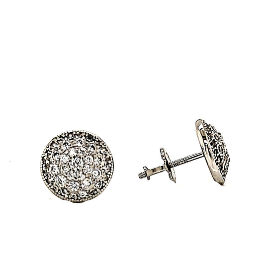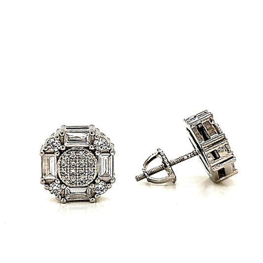 925 Sterling Silver Rhodium Finish Round Pave Stud Screw Back Hexagon Earrings