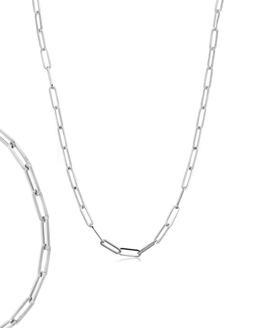 925 Sterling Silver Rhodium Plated Paperclip Chain Necklace 10mm width