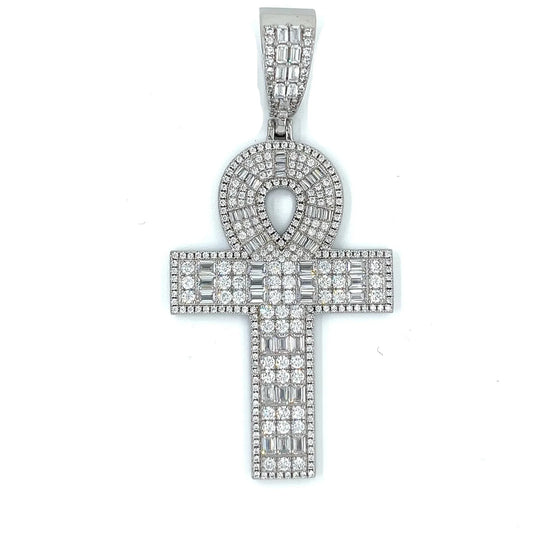 3.4CT Round Moissanite Ornamental Cross Ankh Pendant Charm - M400109
