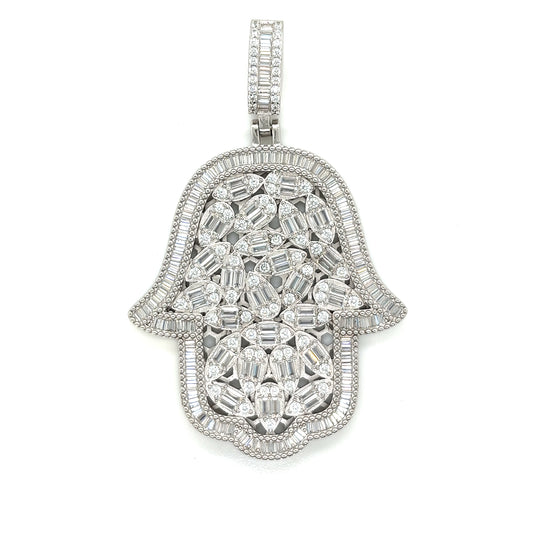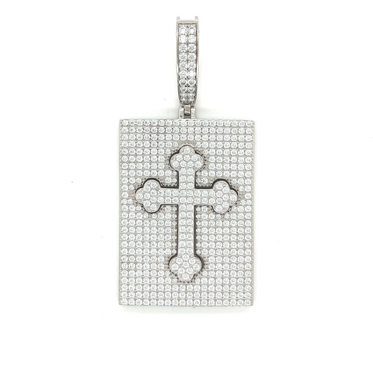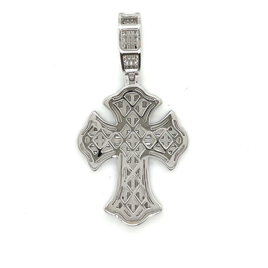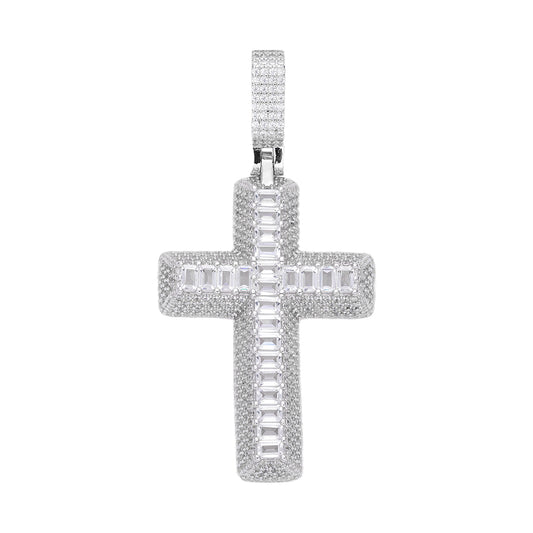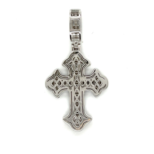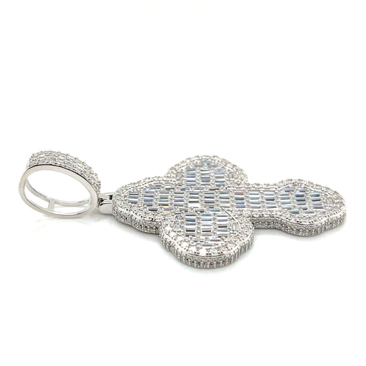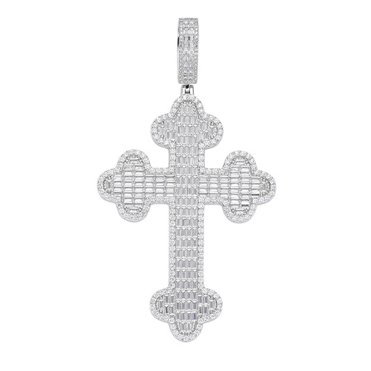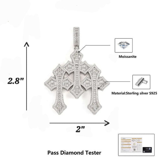 4.79CT Baguette and Round Moissanite Triple Ornamental Cross Pendant 2" Charm - M400099