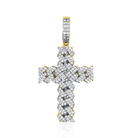 4.79CT Baguette and Round Moissanite Triple Ornamental Cross Pendant 2" Charm - M400099