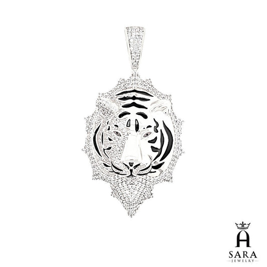 Colgante de oro amarillo con cabeza de tigre y ojos rojos con esmalte negro