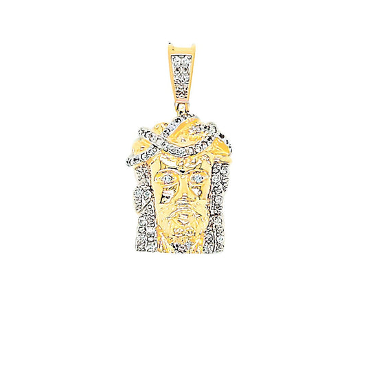 Colgante de plata de ley 925 con acabado rodio y corona de cara de Jesús con diamantes de imitación redondos totalmente helados.