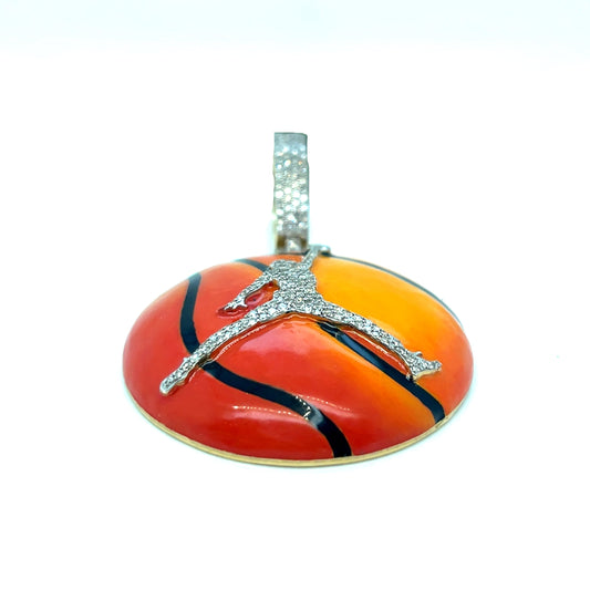 Basketball Copper Sports Black-Orange Enamel Hip Hop 10k Gold 1.09ct Diamond 2.2" Personalized Custom Pendant Charm - CSP21959