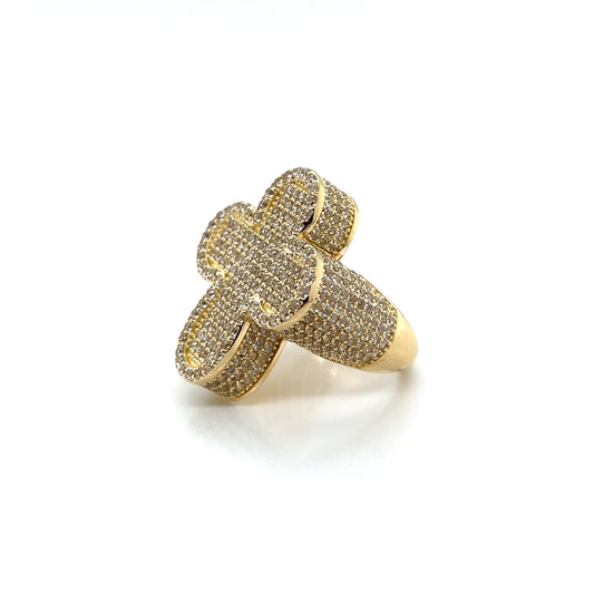 Anillo 3D con cruz de oro de 14 quilates con circonita cúbica
