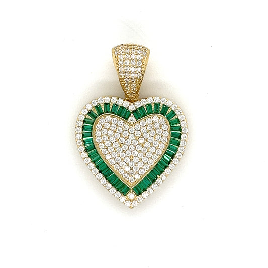 Colgante redondo con forma de corazón y circonita cúbica verde con acabado en oro de 14 quilates para mujer