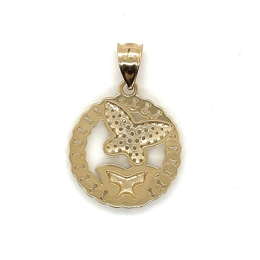 Colgante de mariposa doble redondo de oro de 14 quilates