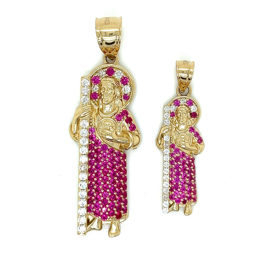 Colgante San Judas Con Corazones De Colores En Oro De 14 Quilates