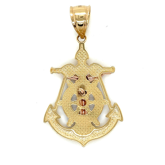 Colgante de cruz de ancla de dos tonos de oro de 14 quilates