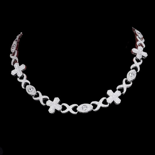 Sterling Silver 925 10mm Infinity Mix Cross Iced Out Moissanite 18"-24" Chain Necklace - M500029