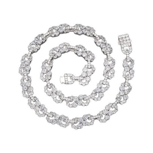 Iced Out 10mm Sterling Silver 925 Clustered Moissanite Infinity Link 18"-24" Chain Necklace - M500059