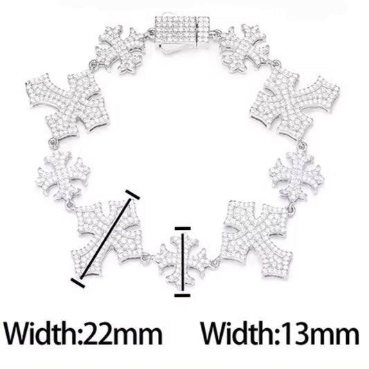 Iced Out Moissanite Sterling Silver 925 Crosses Link 13/22mm Iced Out 18"-24" Chain Necklace - M500049