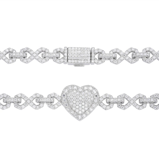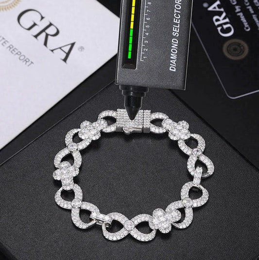 Iced Out 10mm Sterling Silver 925 Clustered Moissanite Infinity Link 7.5"or 8.5" Bracelet - M300059
