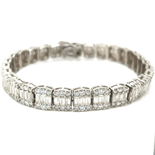 7.78CT MOISSANITE 925 Sterling Silver two prominent rhombus 7" Bangle Bracelet - M300039