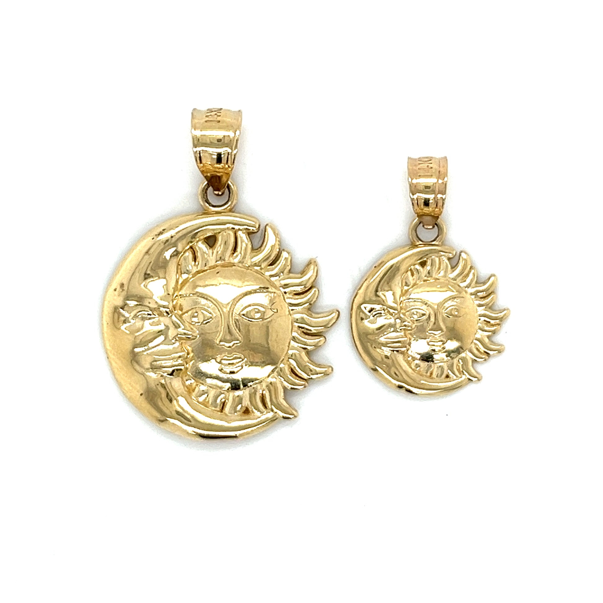 Colgante con cara de sol y luna de oro de 14 quilates