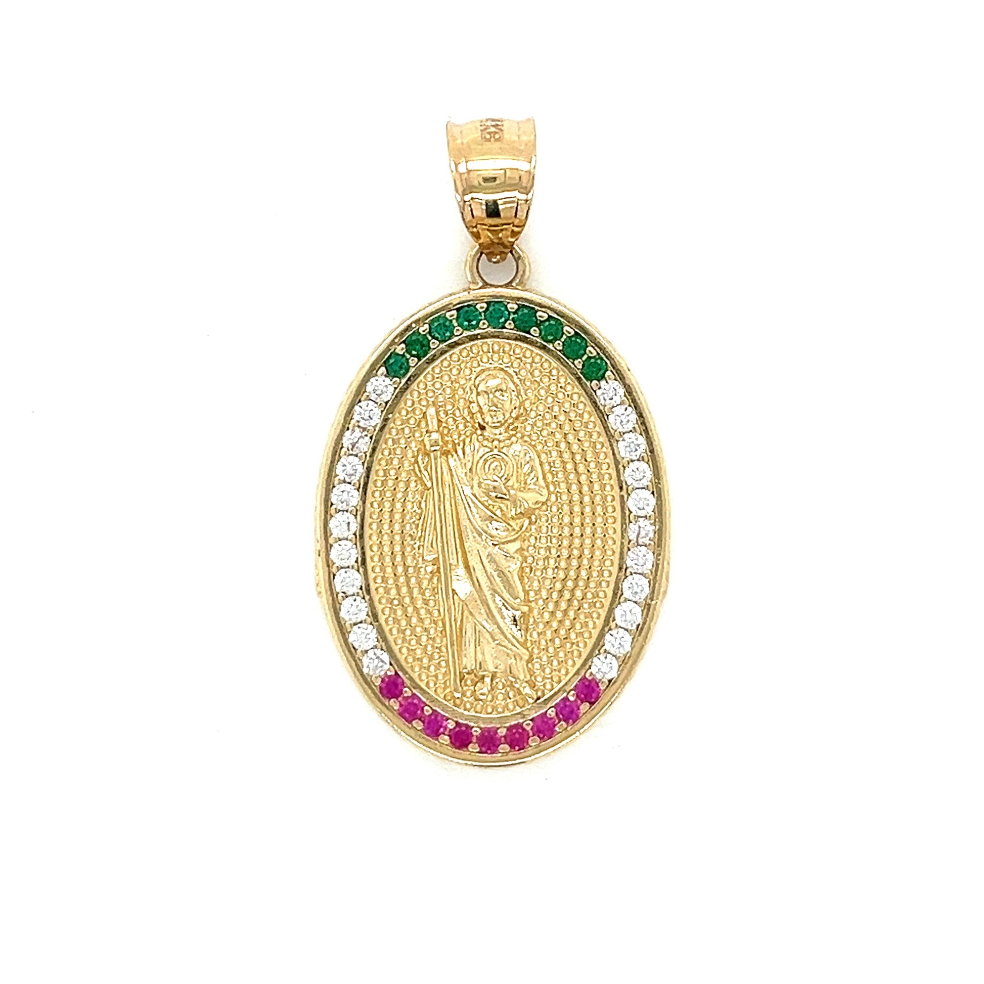 Colgante San Judas Ovalado de Oro de 14 Quilates