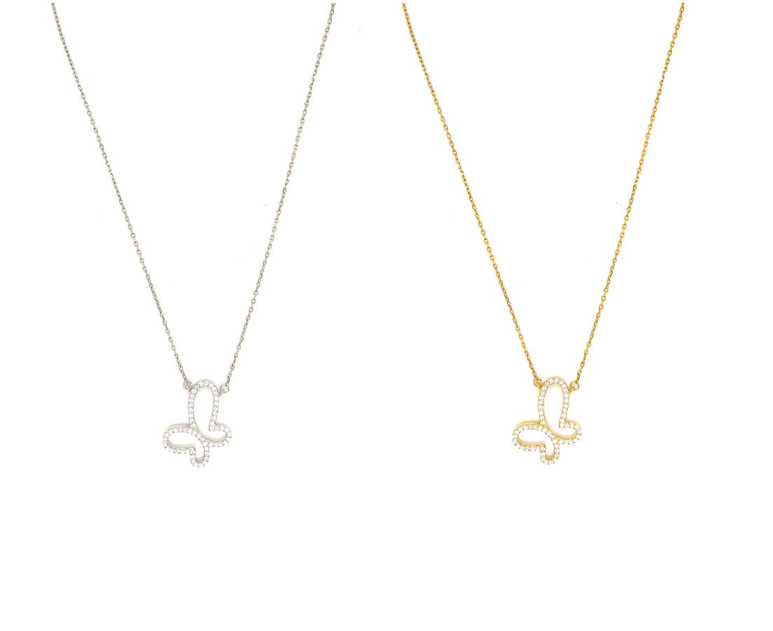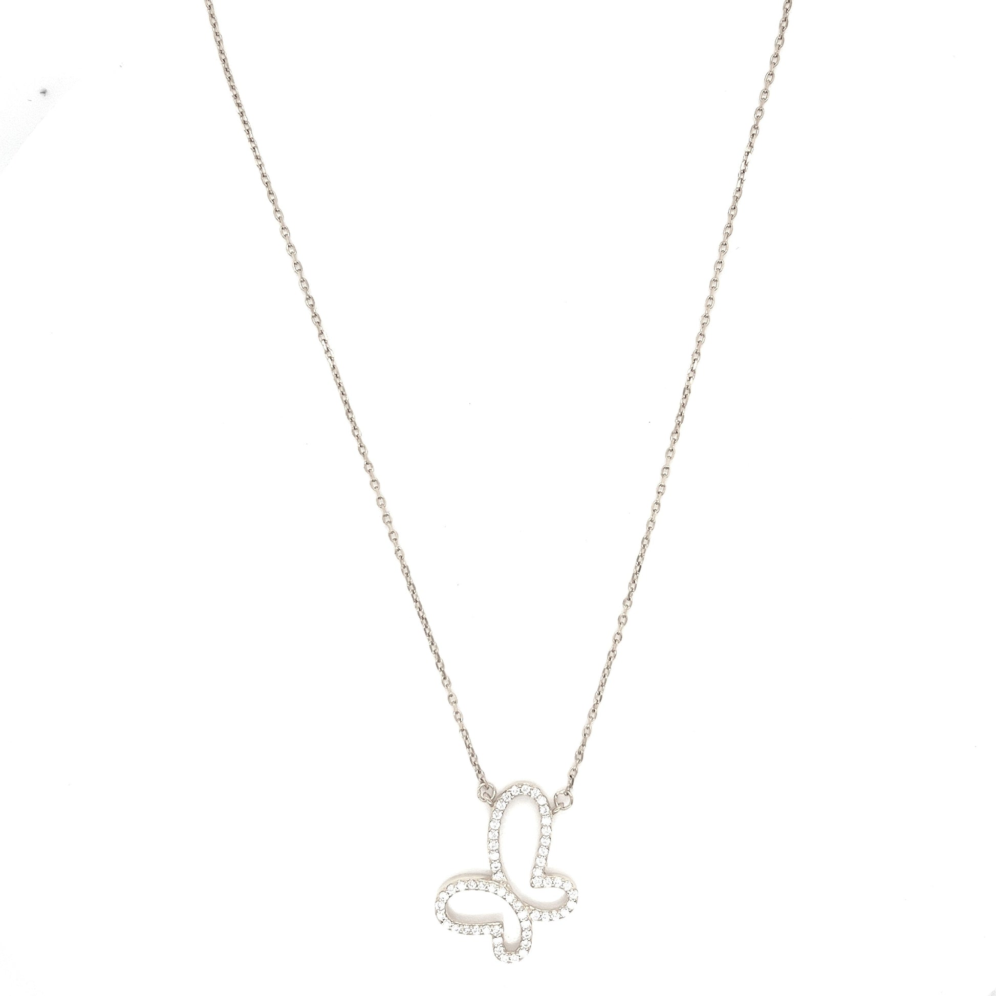 Impresionante cadena de mariposa con circonita cúbica de plata de ley 925: eleva tu estilo con esta belleza atemporal. Con deslumbrantes piedras redondas de circonita cúbica de 19" que añaden un toque de glamour a cualquier look.