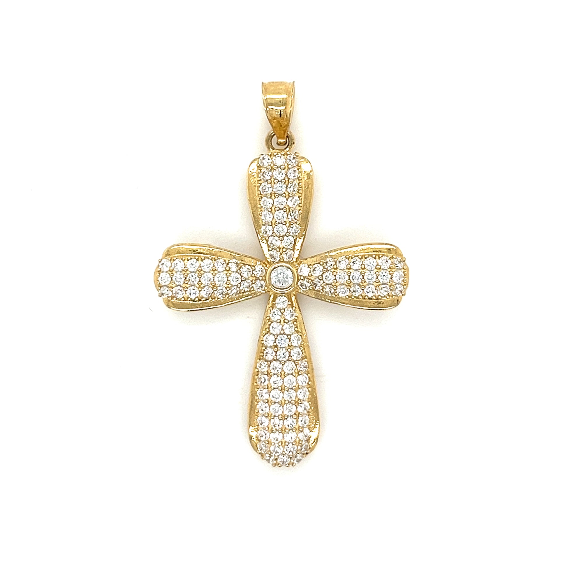 Cruz redondeada de oro de 14 quilates con circonita cúbica