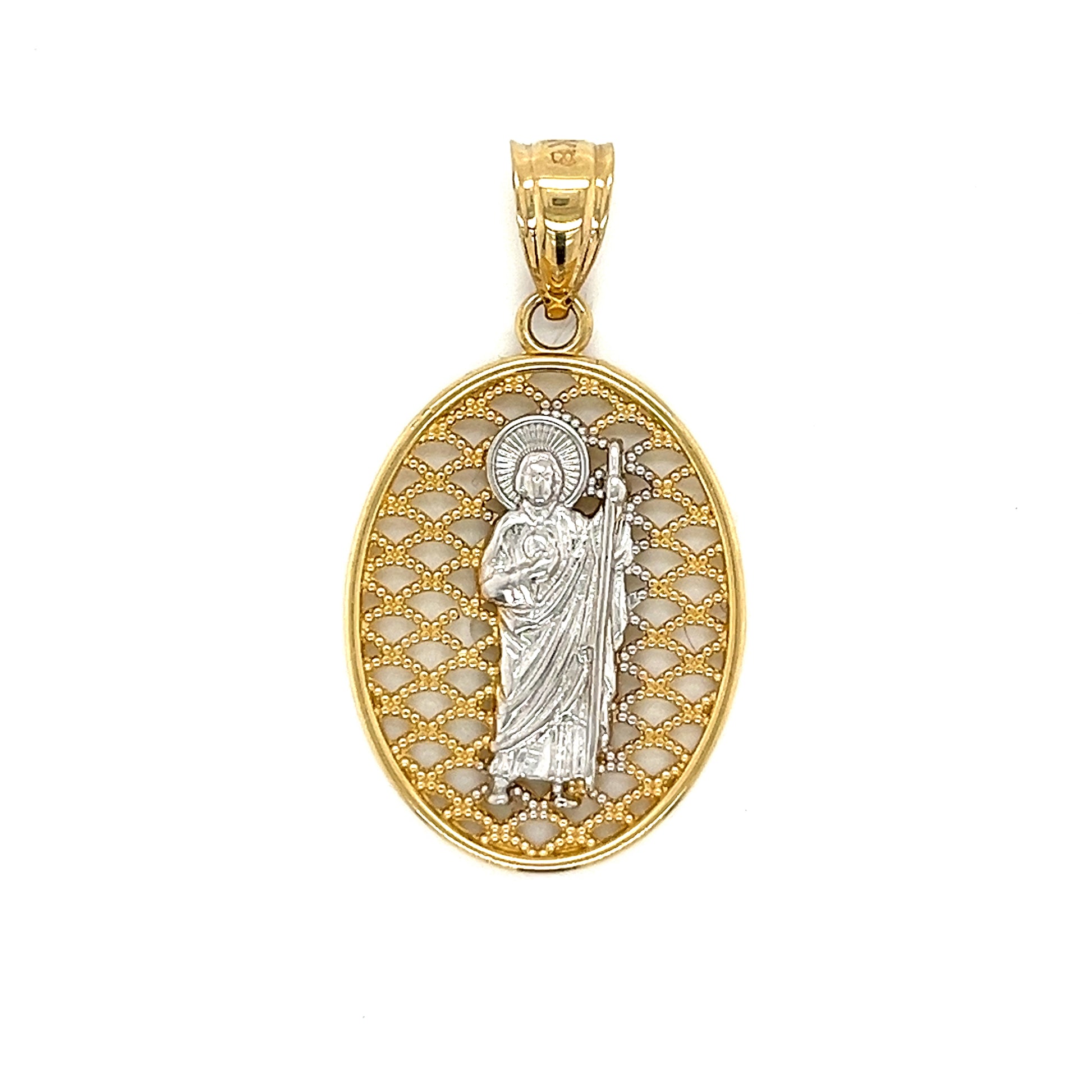 Colgante San Judas de dos tonos en oro de 14 quilates