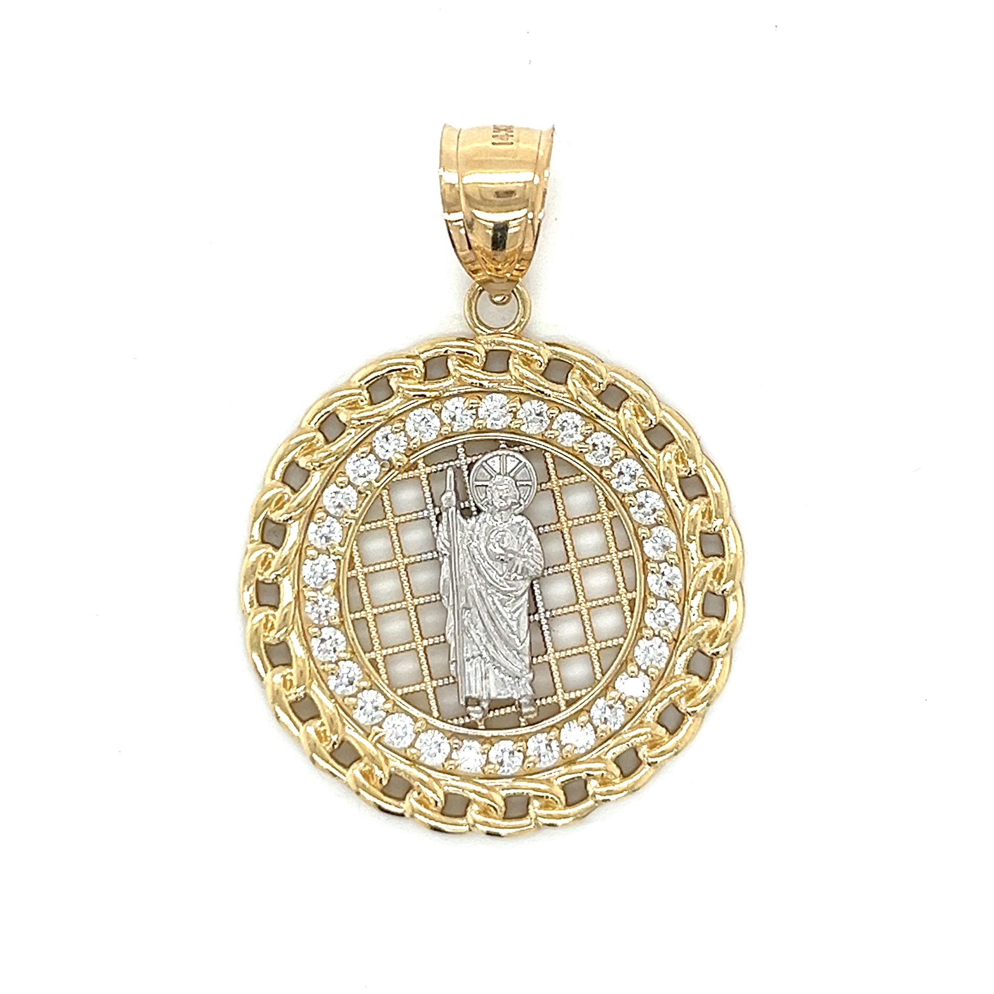 Colgante San Judas Cubano Redondo de Oro de 14 Quilates