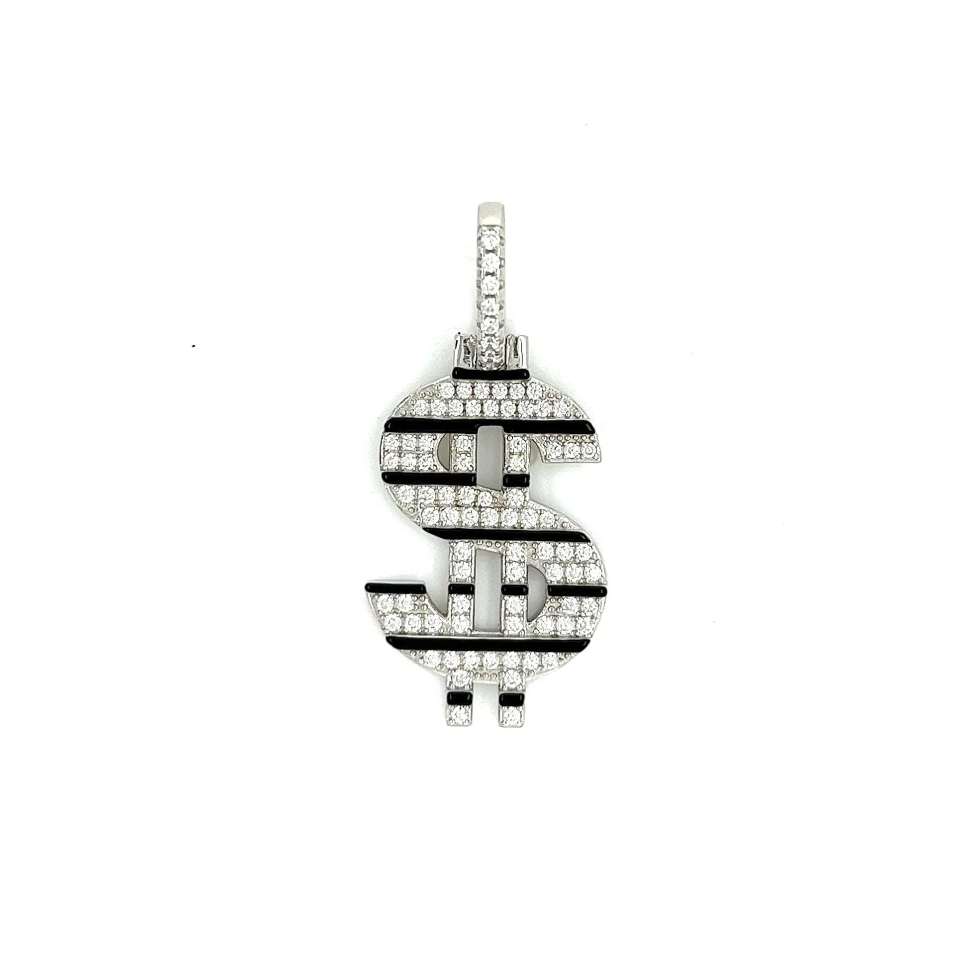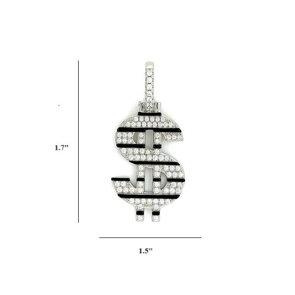Colgante con SIGNO DE DÓLAR de Plata de Ley 925 rodiada adornado con aprox. 1,03 quilates de piedras moissanitas redondas. Este colgante de 1,7*1,5 pulgadas irradia sofisticación. Diseñado para una durabilidad duradera y un estilo inigualable.