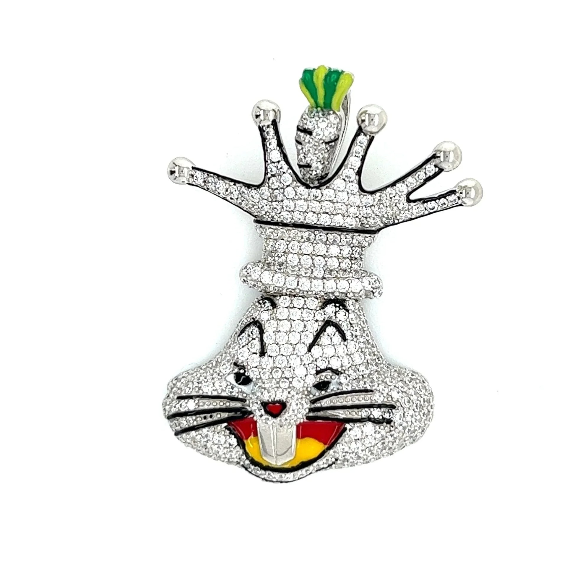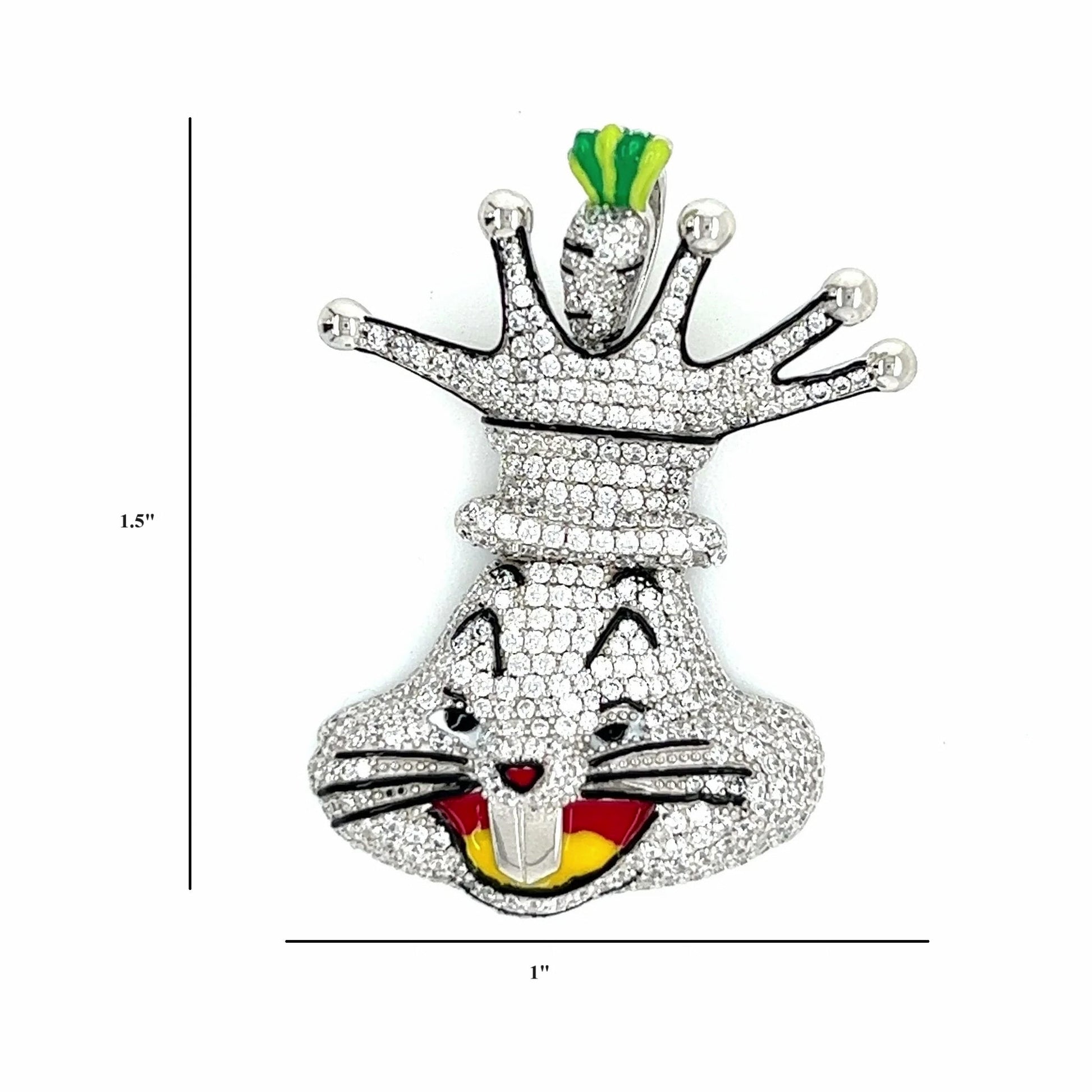Colgante de rodio de Bugs Bunny de plata de ley 925 elaborado con aprox. 2,93 quilates de piedras moissanitas redondas. Con un tamaño de 1,5" x 1" pulgadas, es una sorprendente combinación de elegancia y sentimiento, lo que lo convierte en el accesorio perfecto para darle un toque de lujo.