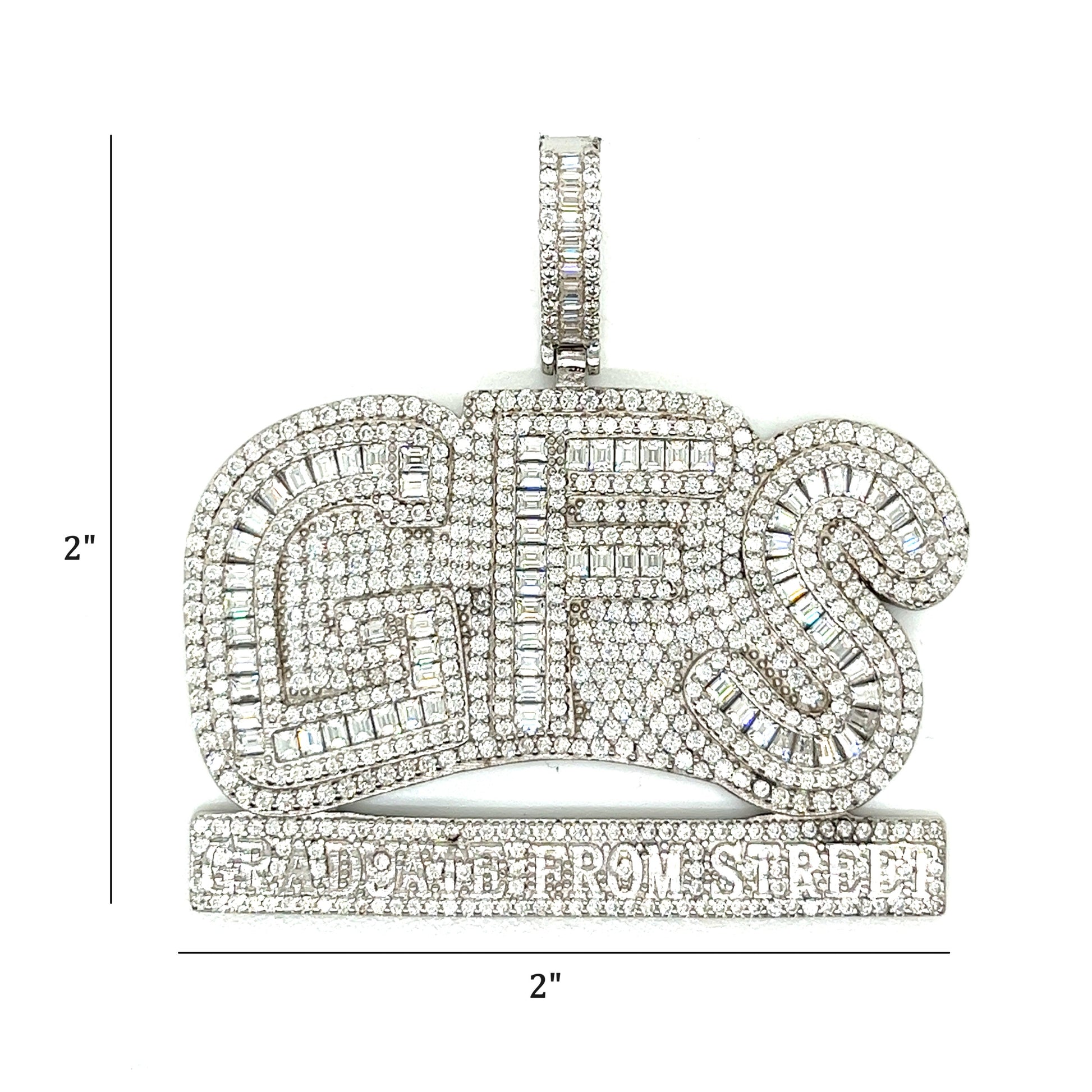 Colgante GRADUADO DE LA CALLE de Plata de Ley 925 Rodiada adornado con aprox. 6,14 quilates de piedras moissanitas redondas. Este colgante de 2*2 pulgadas irradia sofisticación. Diseñado para una durabilidad duradera y un estilo inigualable.
