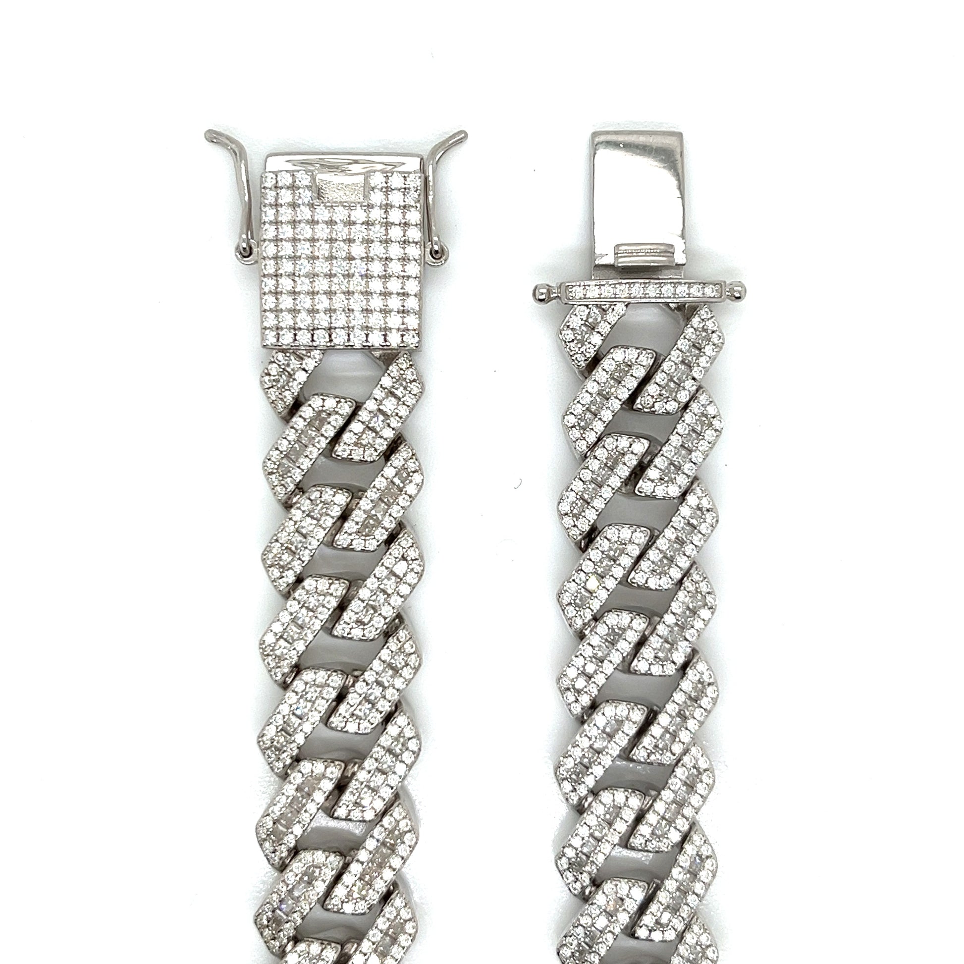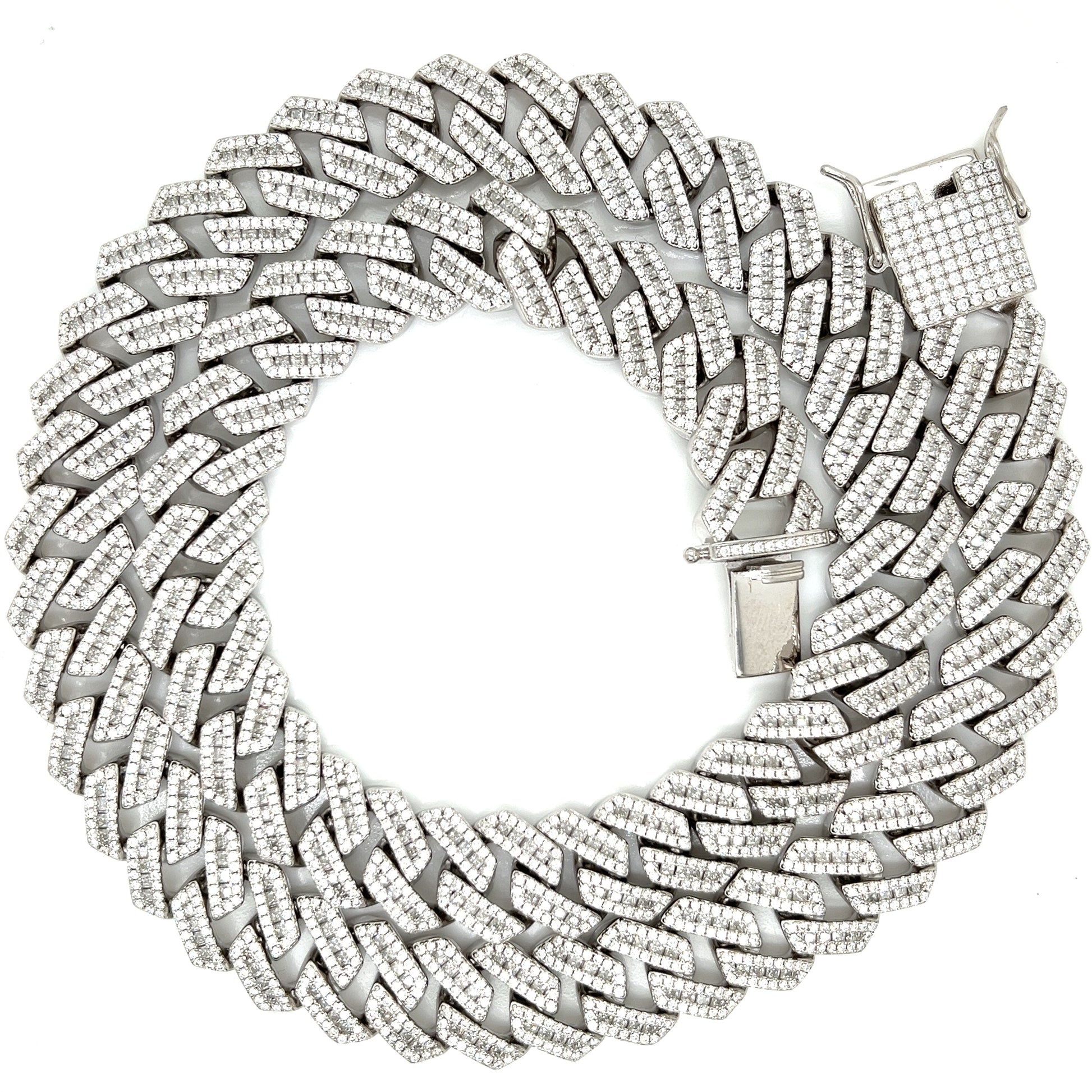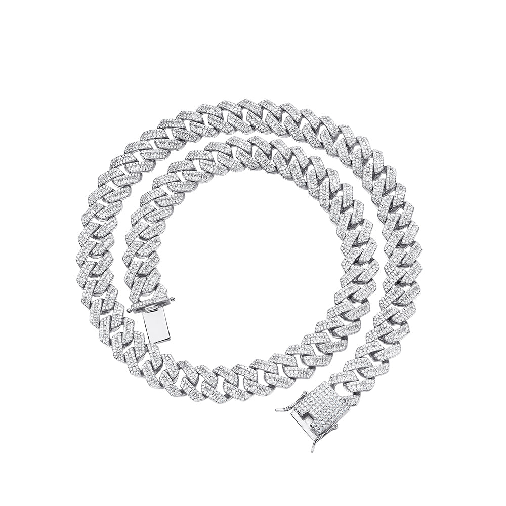 Esta cadena, hecha de plata de ley S925, presenta una impresionante variedad de piedras moissanita redondas y baguette con un total aproximado de 35,34 quilates. Con un ancho de 14 mm y una longitud de 24 pulgadas, esta cadena es a la vez elegante y sofisticada.