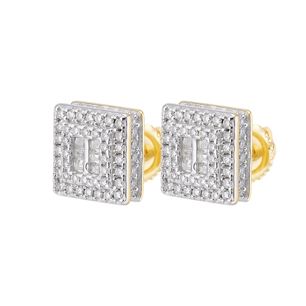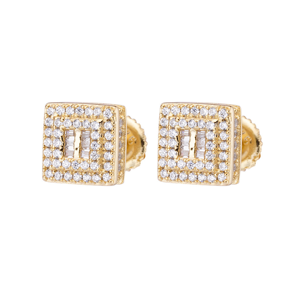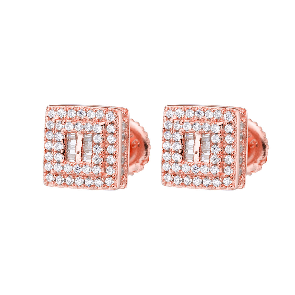 Impress your fashion game with these chic 8MM Round Screwback Earrings made from 925 Sterling Silver and coated in Rhodium. These classic earrings showcase of high-quality round & baguette cubic zirconia stones , effortlessly enhancing any outfit.