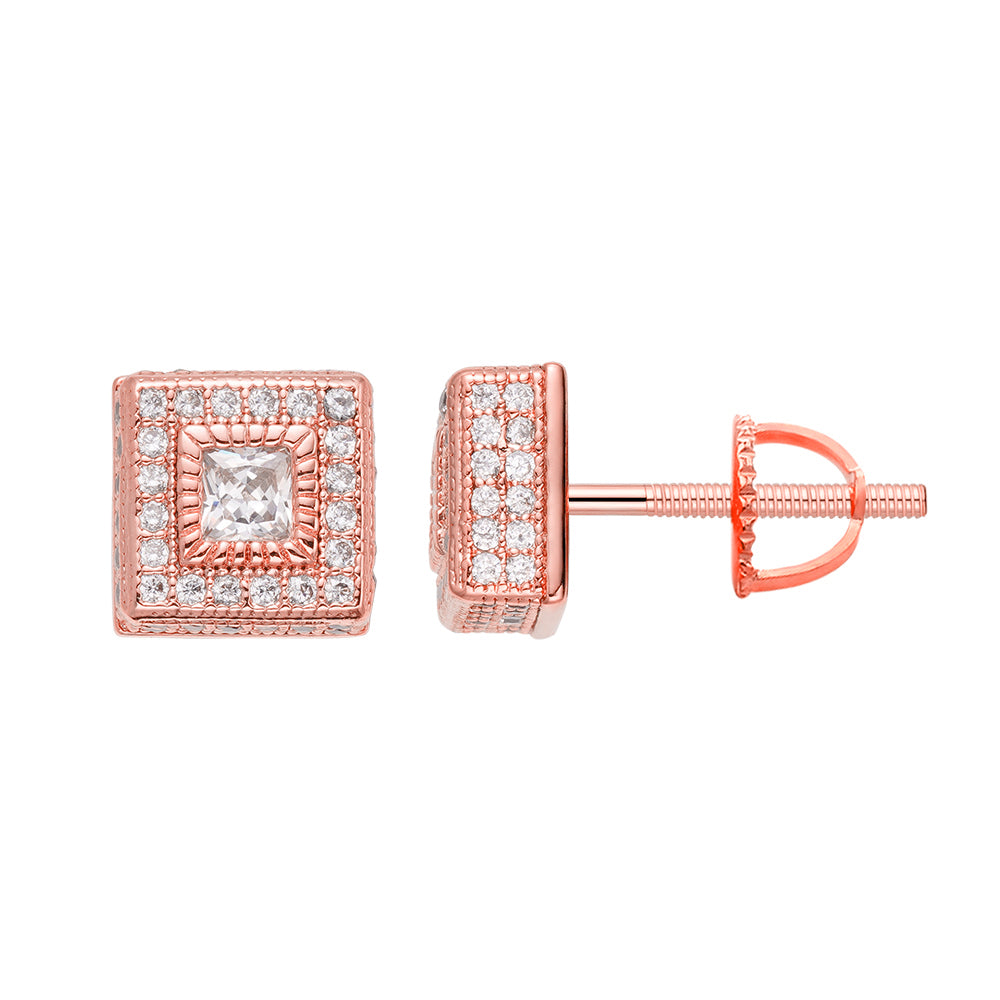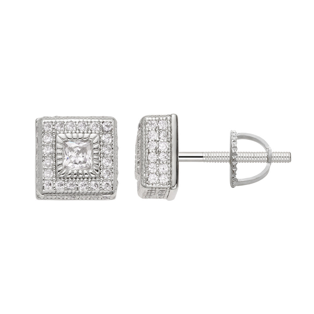 Enhance your fashion game with these stylish 8MM Square Screwback Earrings, crafted from 925 Sterling Silver and coated in Rhodium. These timeless earrings feature top-notch Round Cubic Zirconia Stones, elevating any outfit with ease.