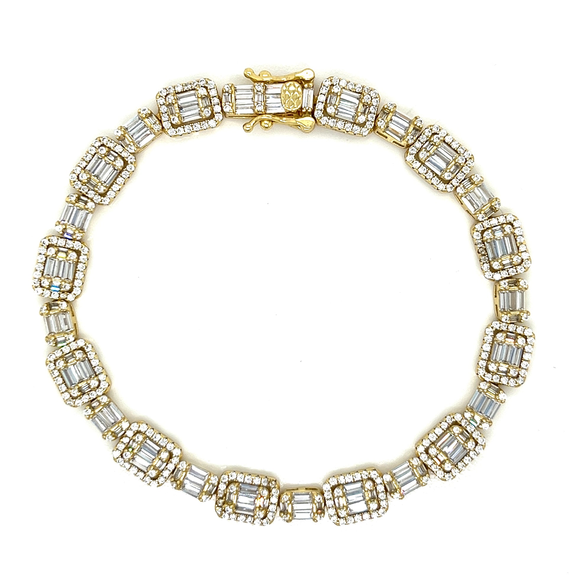Impresionante pulsera cuadrada de plata de ley 925 : eleva tu estilo con esta belleza atemporal. Esta pulsera de 7" presenta circonita cúbica redonda y baguette. Piedras, aporta un toque de glamour a cualquier look.