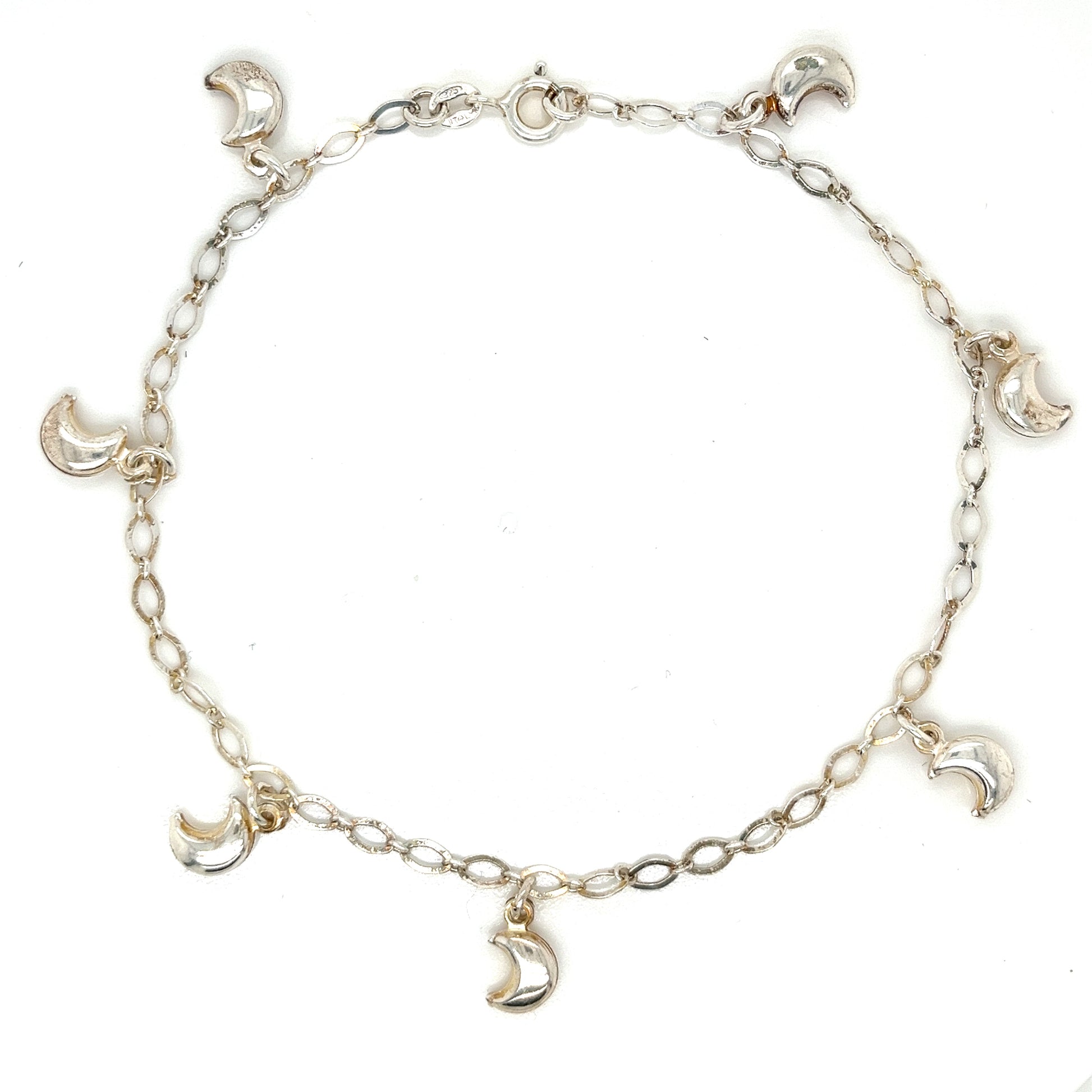 Impresionante tobillera con forma de luna de plata de ley 925: eleva tu estilo con esta belleza atemporal. Esta deslumbrante pulsera de 9,5" añade un toque de glamour a cualquier look.