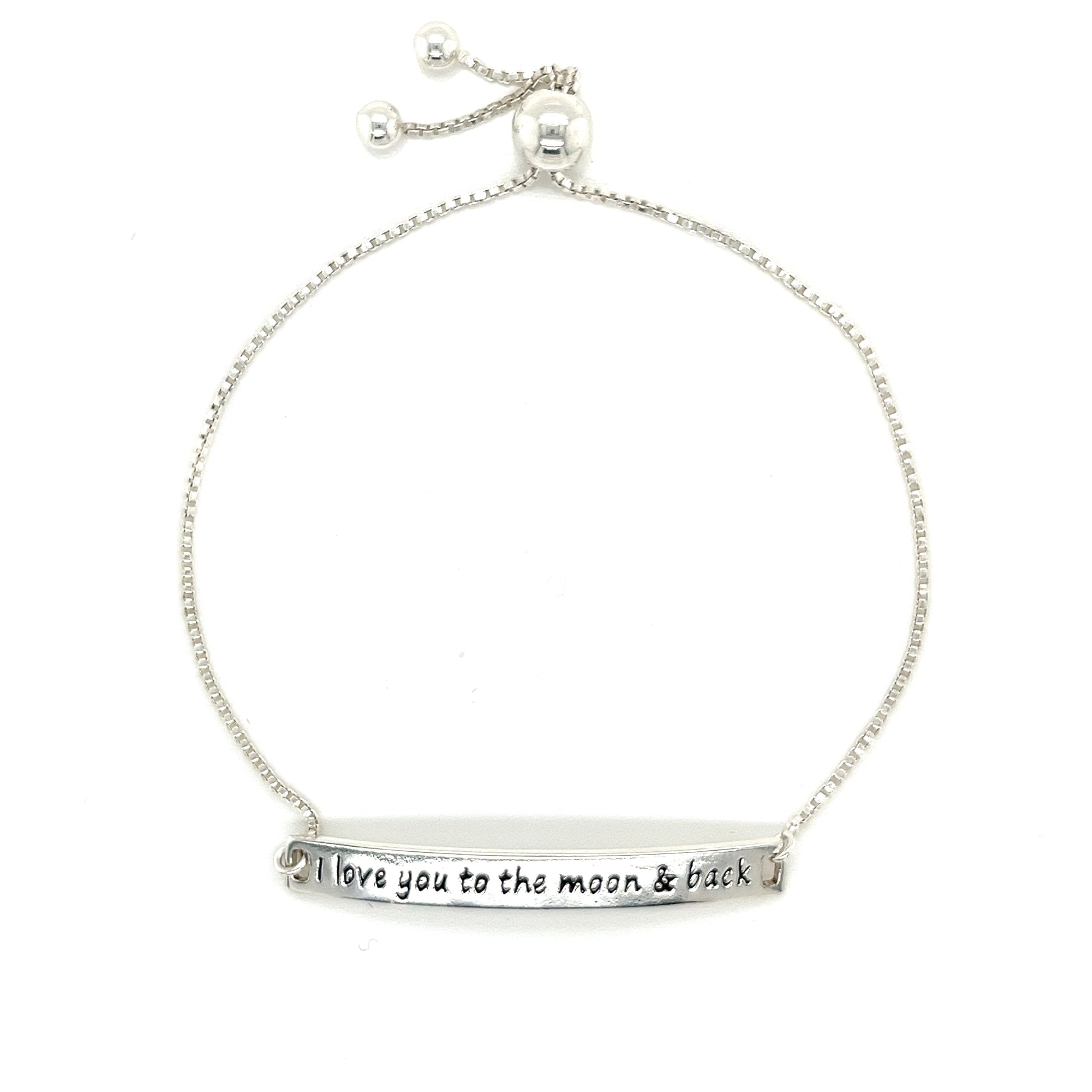 Impresionante pulsera ajustable de plata de ley 925 "Te amo hasta la luna y de regreso": eleva tu estilo con esta belleza atemporal. Esta pulsera añade un toque de glamour a cualquier look.