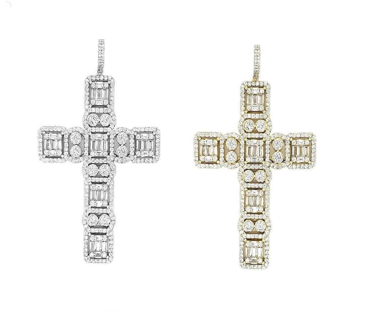 Impresionante colgante de cruz con circonita cúbica de plata de ley 925: eleva tu estilo con esta joya atemporal que mide 4" x 2,3". Con piedras CZ redondas y baguette , añade un toque de glamour a cualquier look.