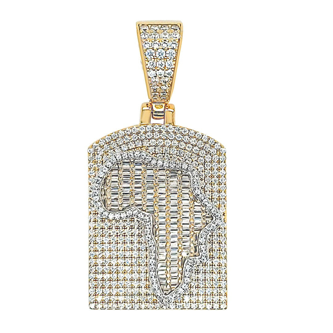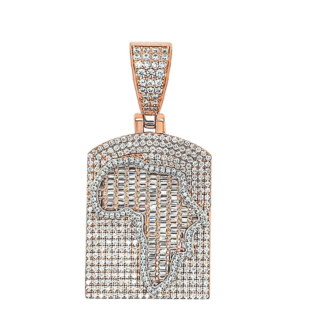 Impresionante colgante de plata de ley 925 con circonita rodiada y circonita cúbica helada de África Hip Hop con pavé redondo y baguette: eleva tu estilo con esta belleza atemporal. Con 2"*1.25"(con fianza) agrega un toque de glamour a cualquier look.