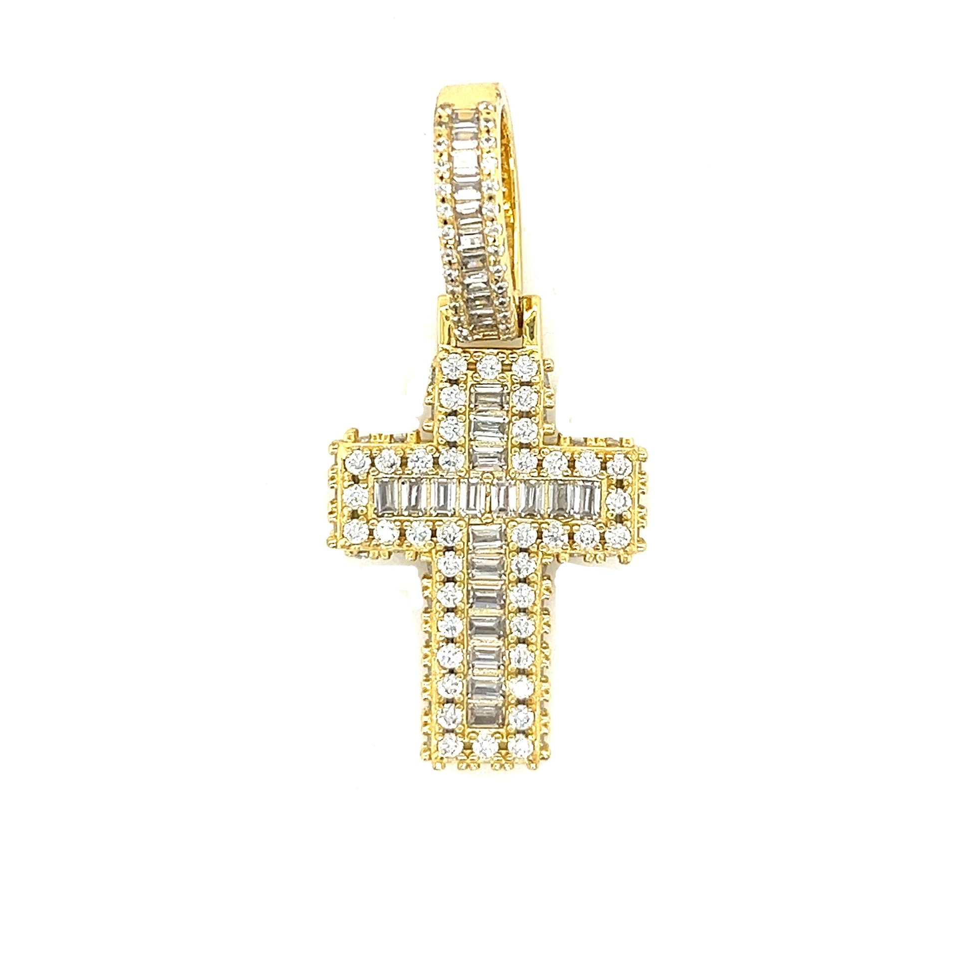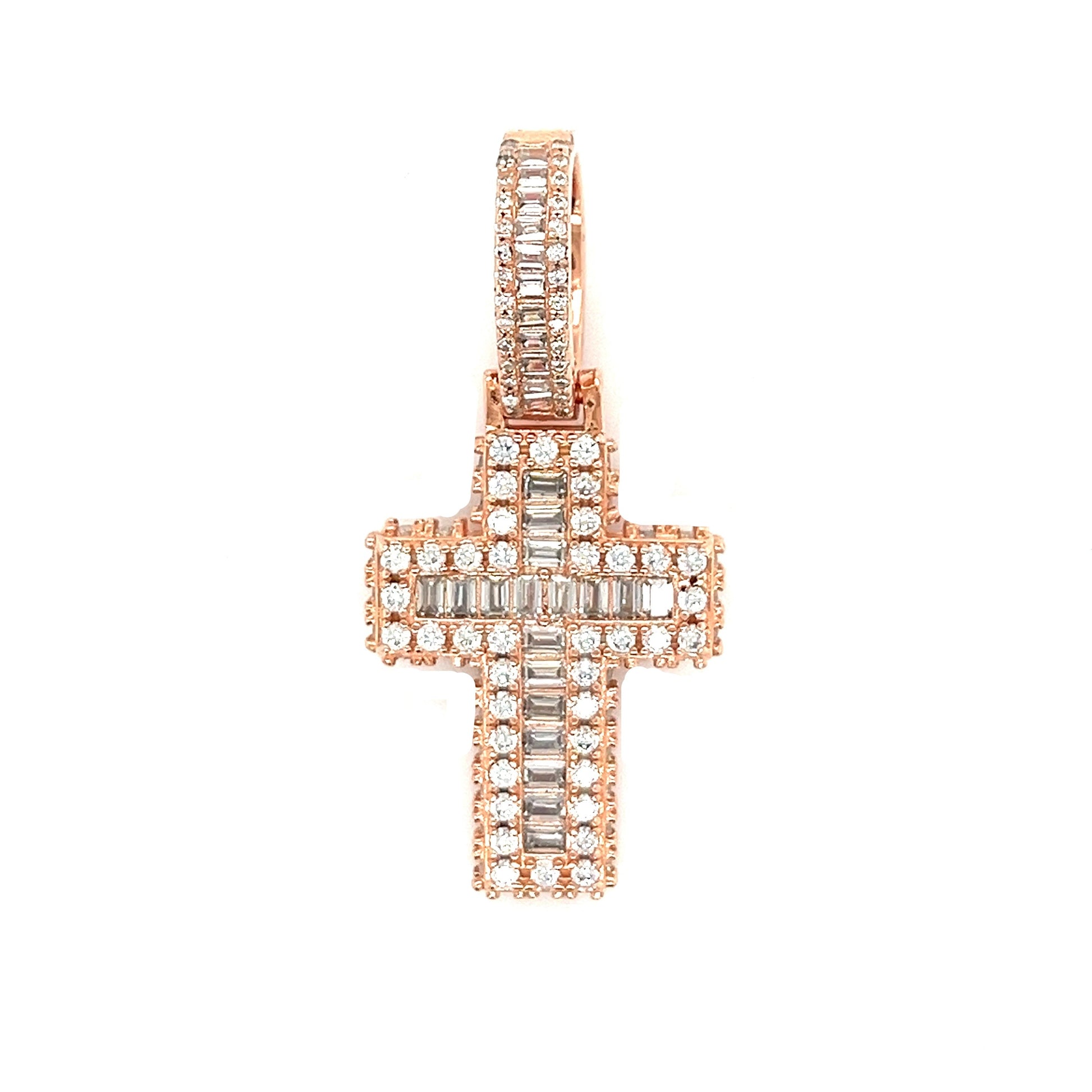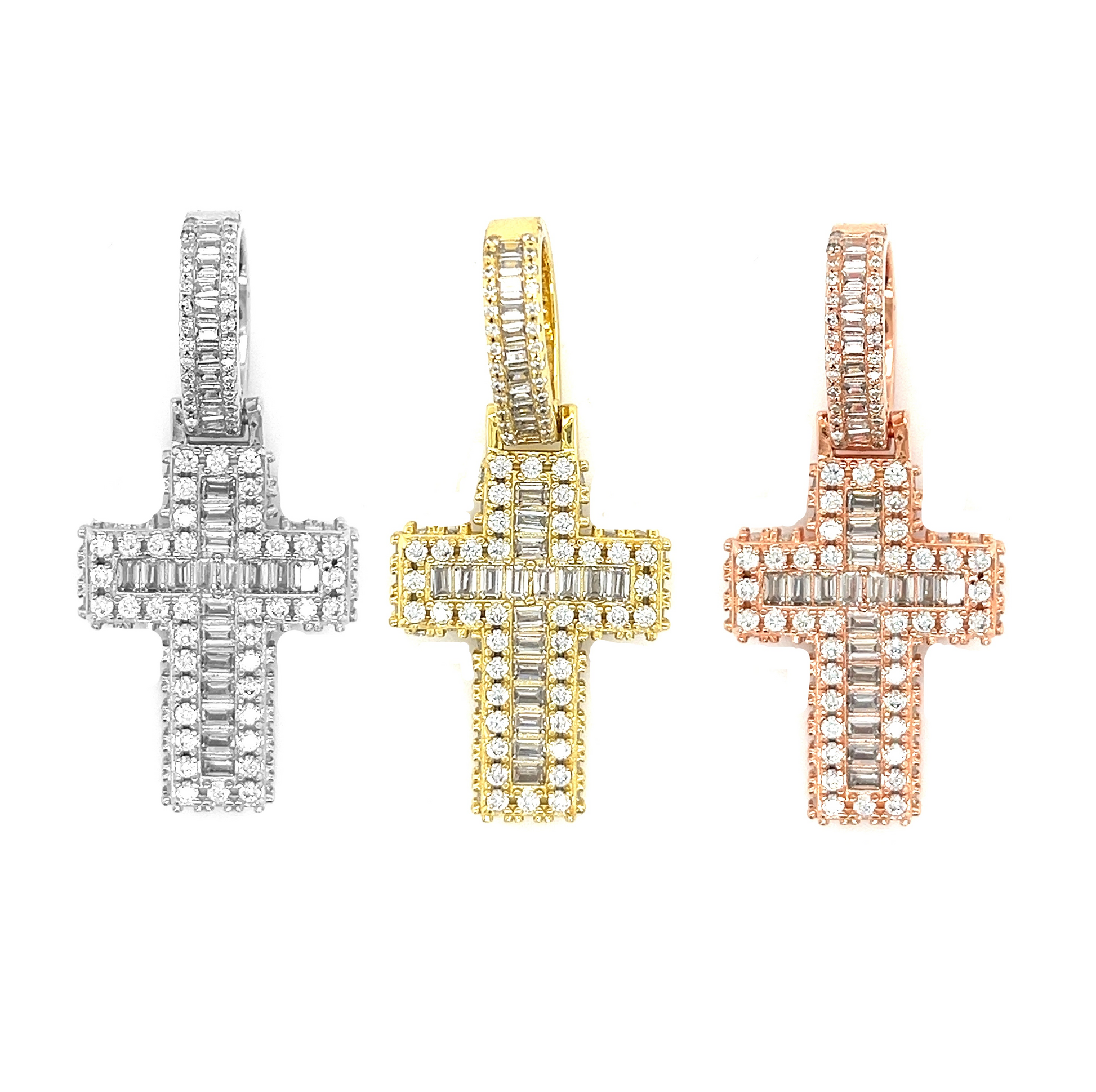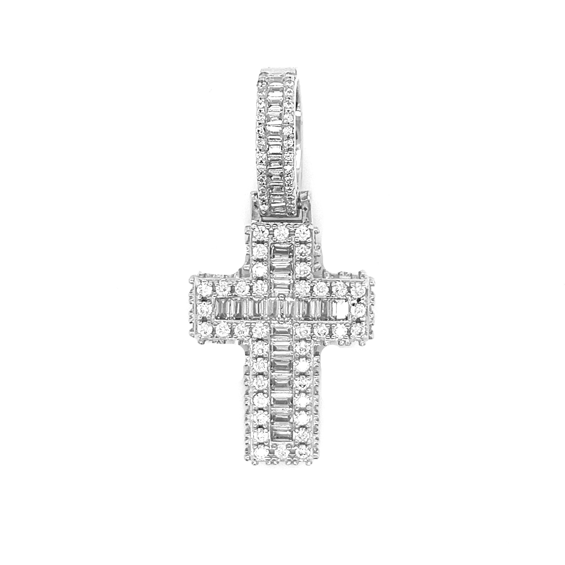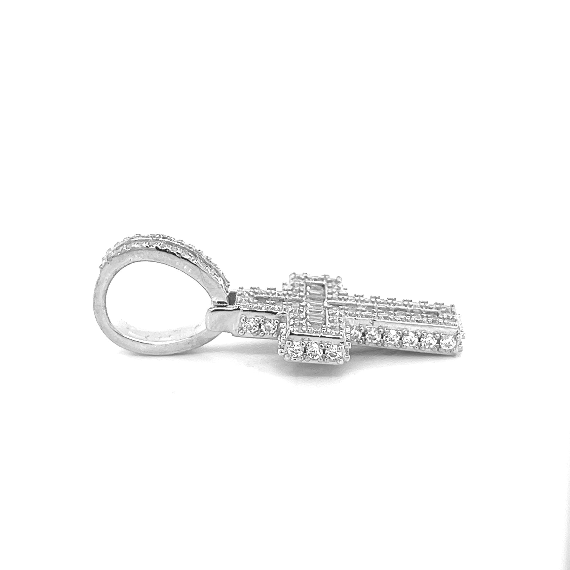 Impresionante colgante de cruz elegante de plata de ley 925: eleva tu estilo con esta belleza atemporal que mide 1,5 x 0,8 pulgadas. Con deslumbrantes piedras de circonita cúbica redonda y baguette. Con Alta Calidad, añade un toque de glamour a cualquier look.