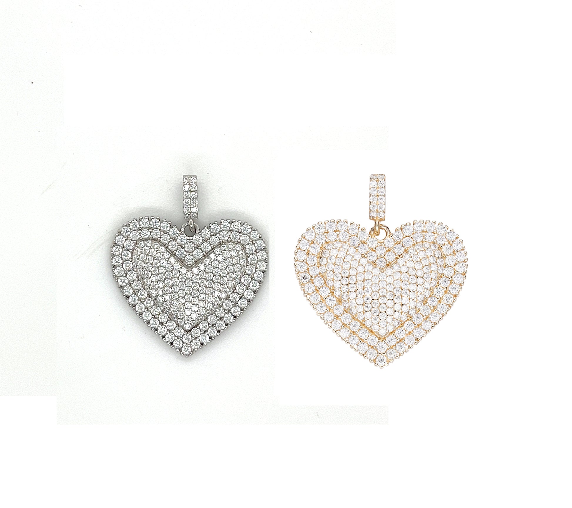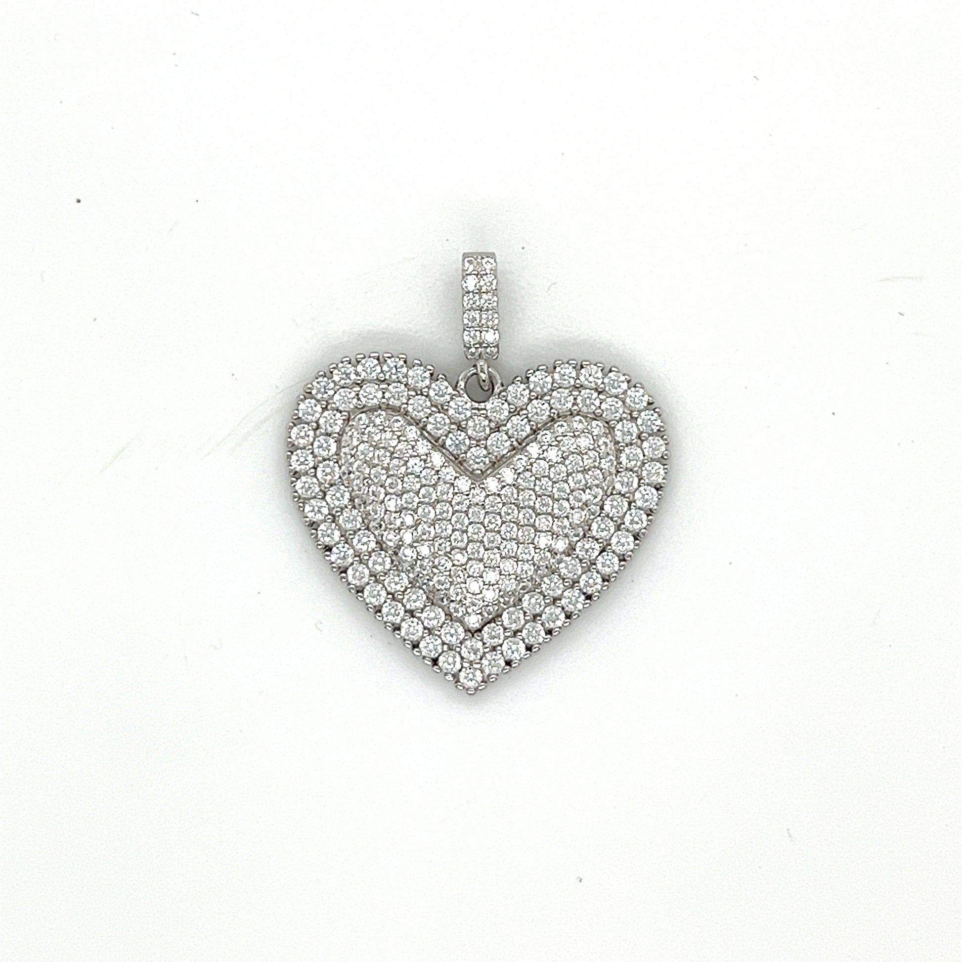 Abrace la elegancia con nuestro colgante de corazón de plata de ley 925 con rodio y circonita cúbica. Mide 1.0 x 1.0 in adornado con piedras redondas de circonita cúbica. Libera la belleza de la naturaleza al alcance de tu mano.