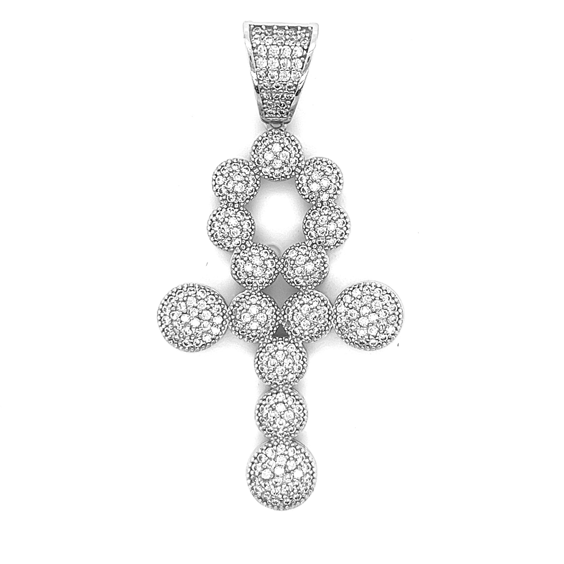 Impresionante colgante de cruz Ankh de plata de ley 925: eleva tu estilo con esta belleza atemporal que mide 2” * 1”. Con deslumbrantes piedras de circonita cúbica redonda y baguette. Con Alta Calidad, añade un toque de glamour a cualquier look.