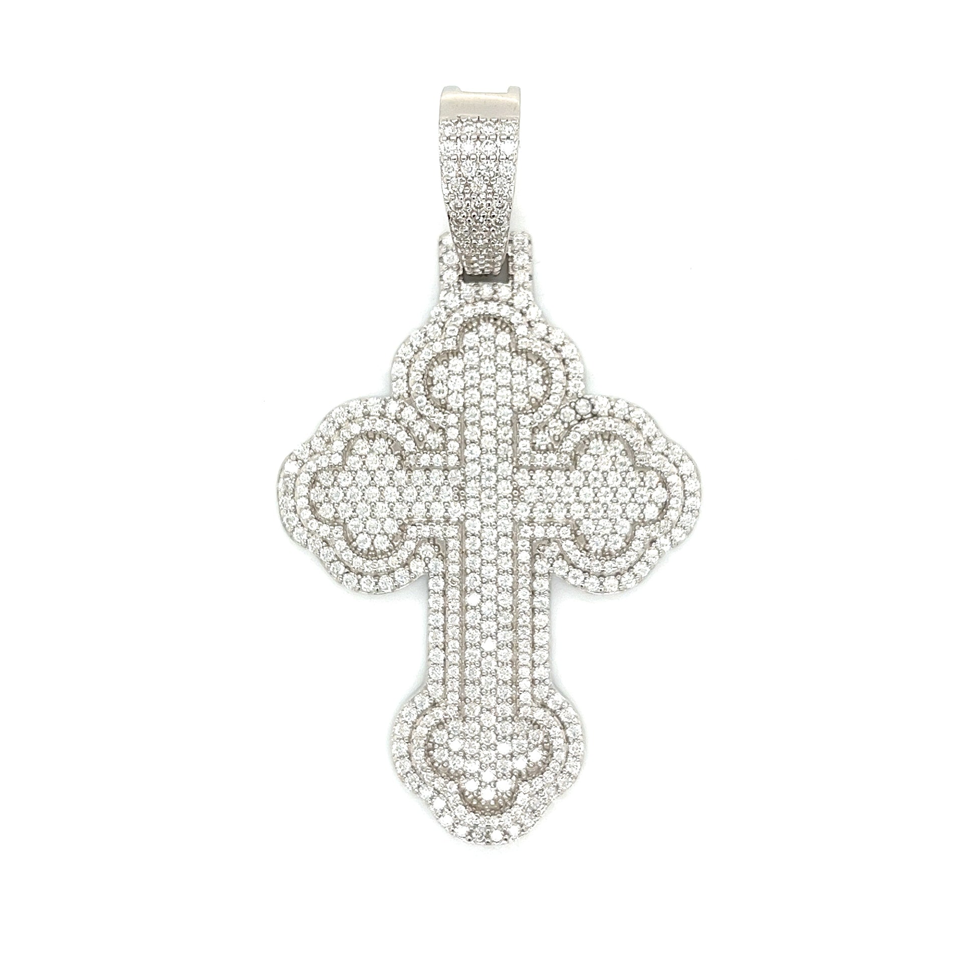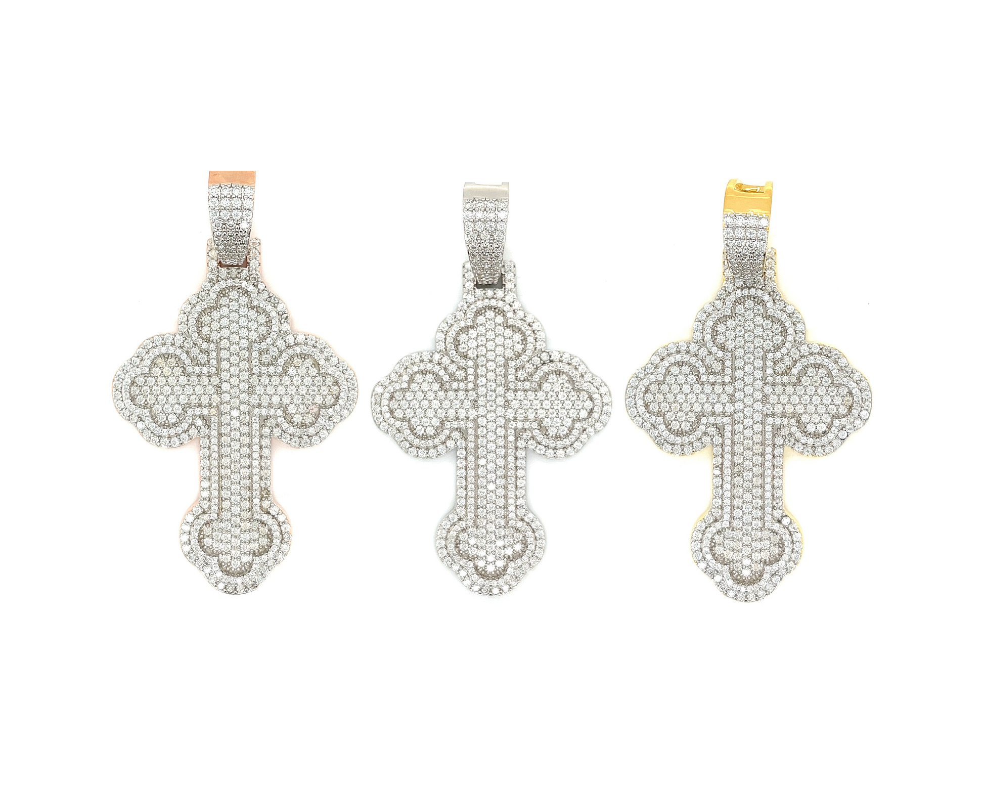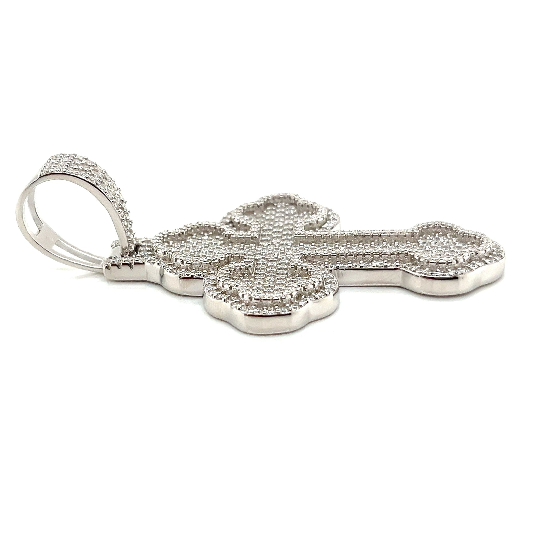 Impresionante colgante de cruz de circonita cúbica de rodio en plata de ley 925: eleva tu estilo con esta belleza atemporal. Con piedras de circonita cúbica redondas y baguette, añade un toque de glamour a cualquier look.