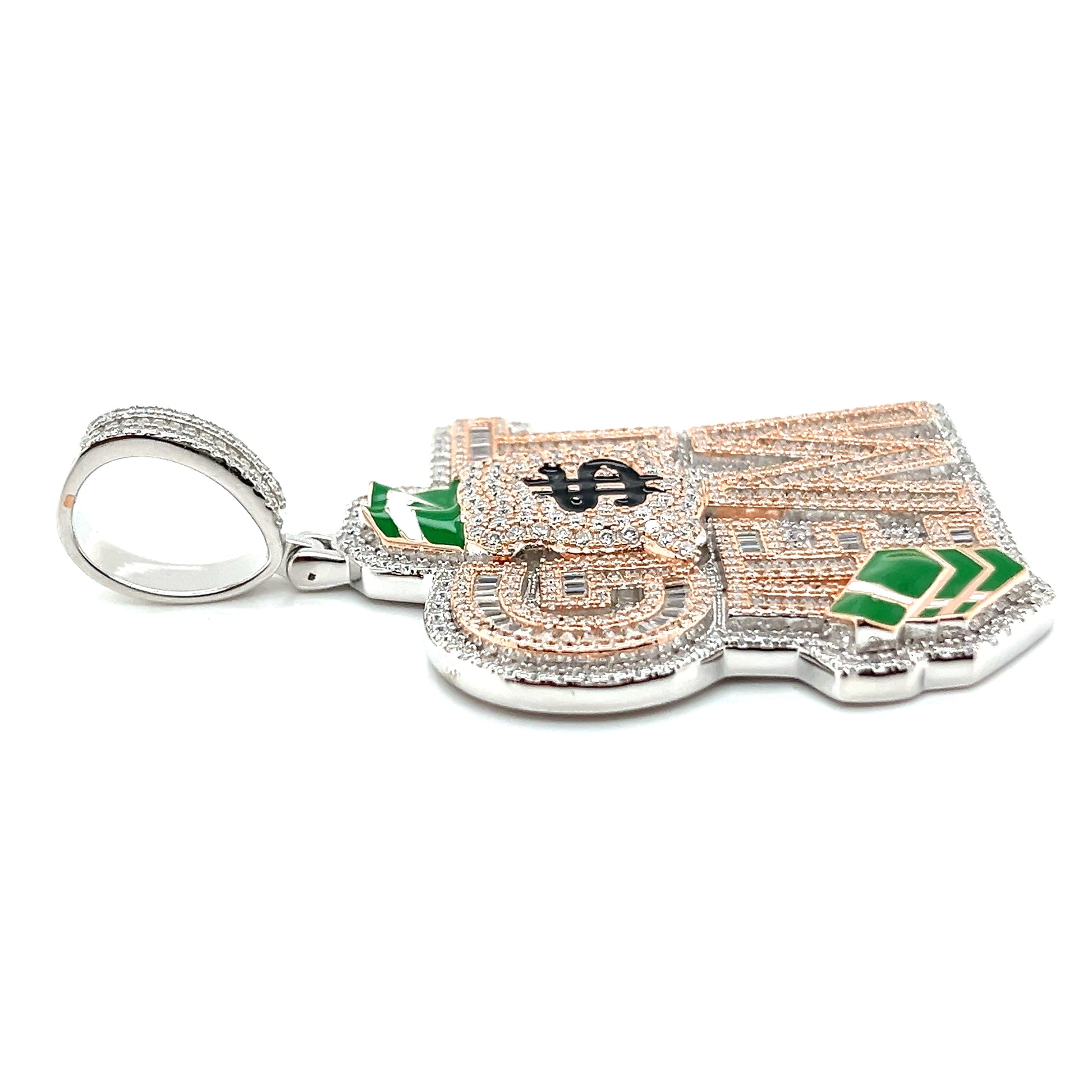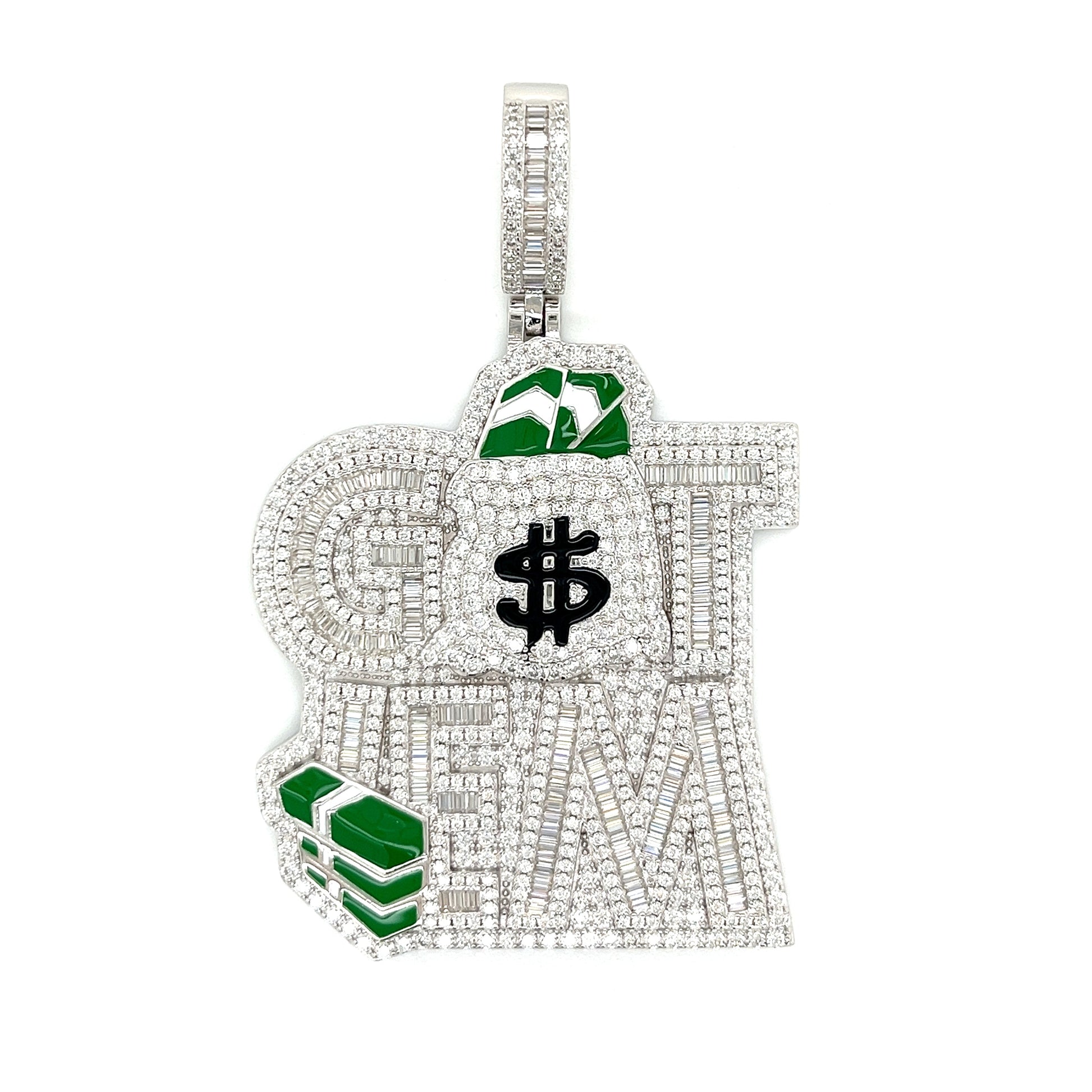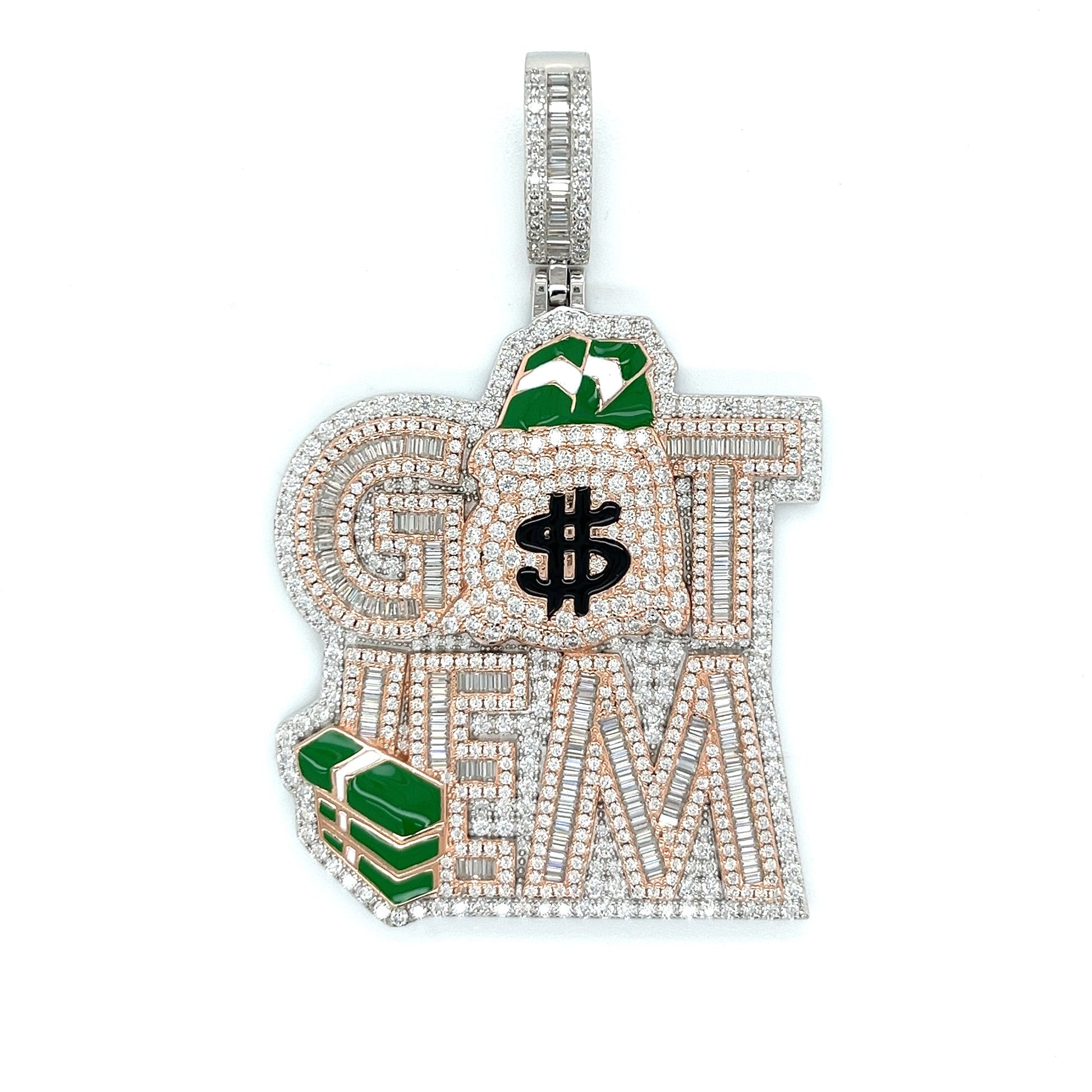 Impresionante colgante GETEM de plata de ley 925 con circonita rodiada: eleva tu estilo con esta belleza atemporal. Con piedras de circonita cúbica redondas y baguette, añade un toque de glamour a cualquier look.