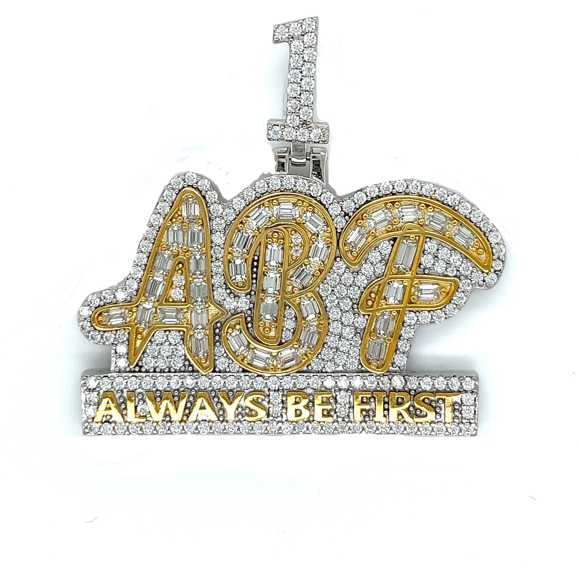 Impresionante colgante de plata de ley 925 con circonita cúbica 1 ABF ("Siempre sé el primero") : eleva tu estilo con esta joya atemporal que mide 2,7"* 1,4". Con piedras de circonita redondas , añade un toque de glamour a cualquier look.