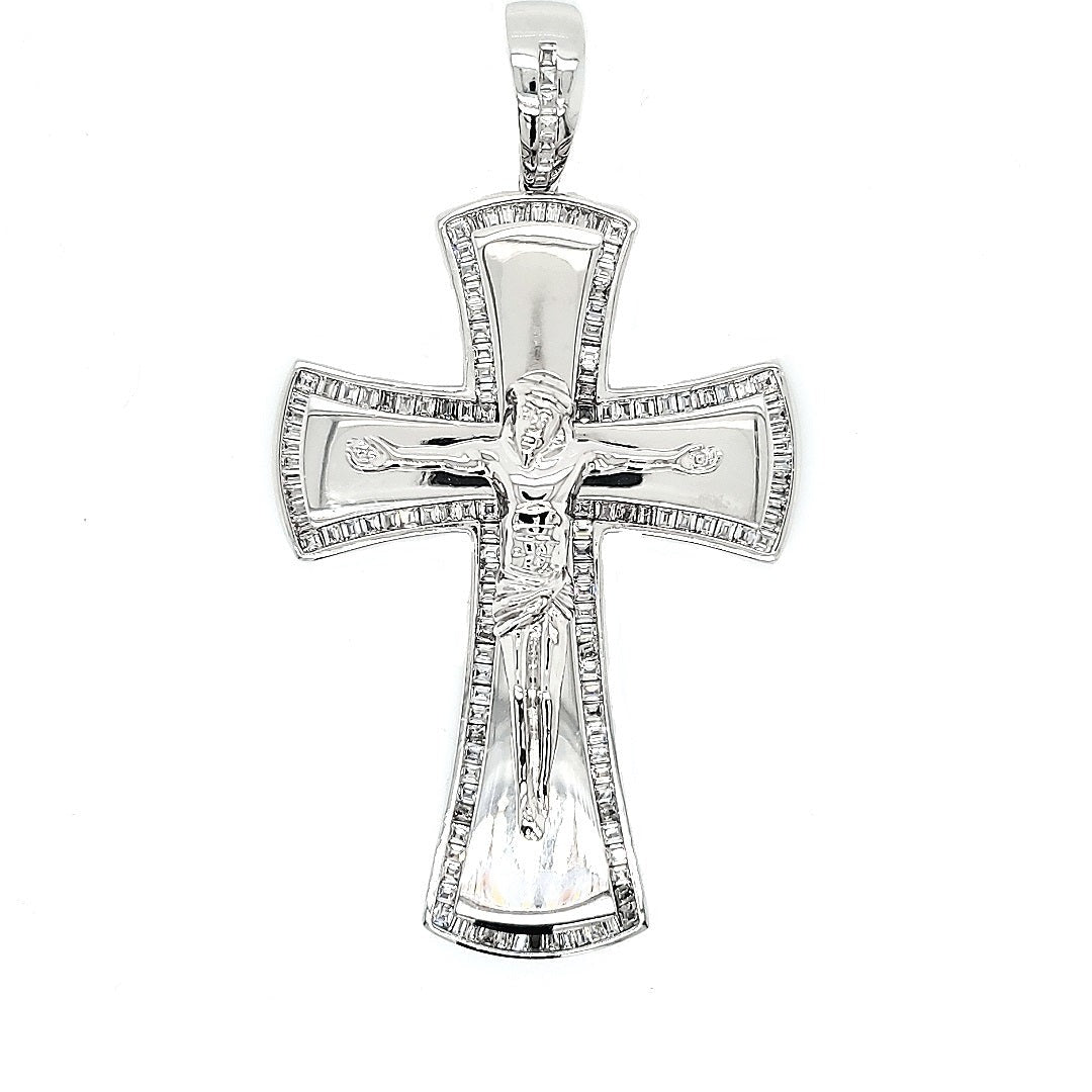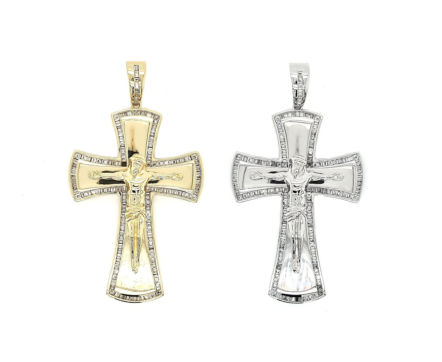 Impresionante colgante de cruz de plata de ley 925 con rodio y circonita cúbica: eleva tu estilo con esta belleza atemporal. Con una pulsera de piedras de circonita cúbica (CZ) redondas y baguette de 3,2 x 1,8 pulgadas, añade un toque de glamour a cualquier look.