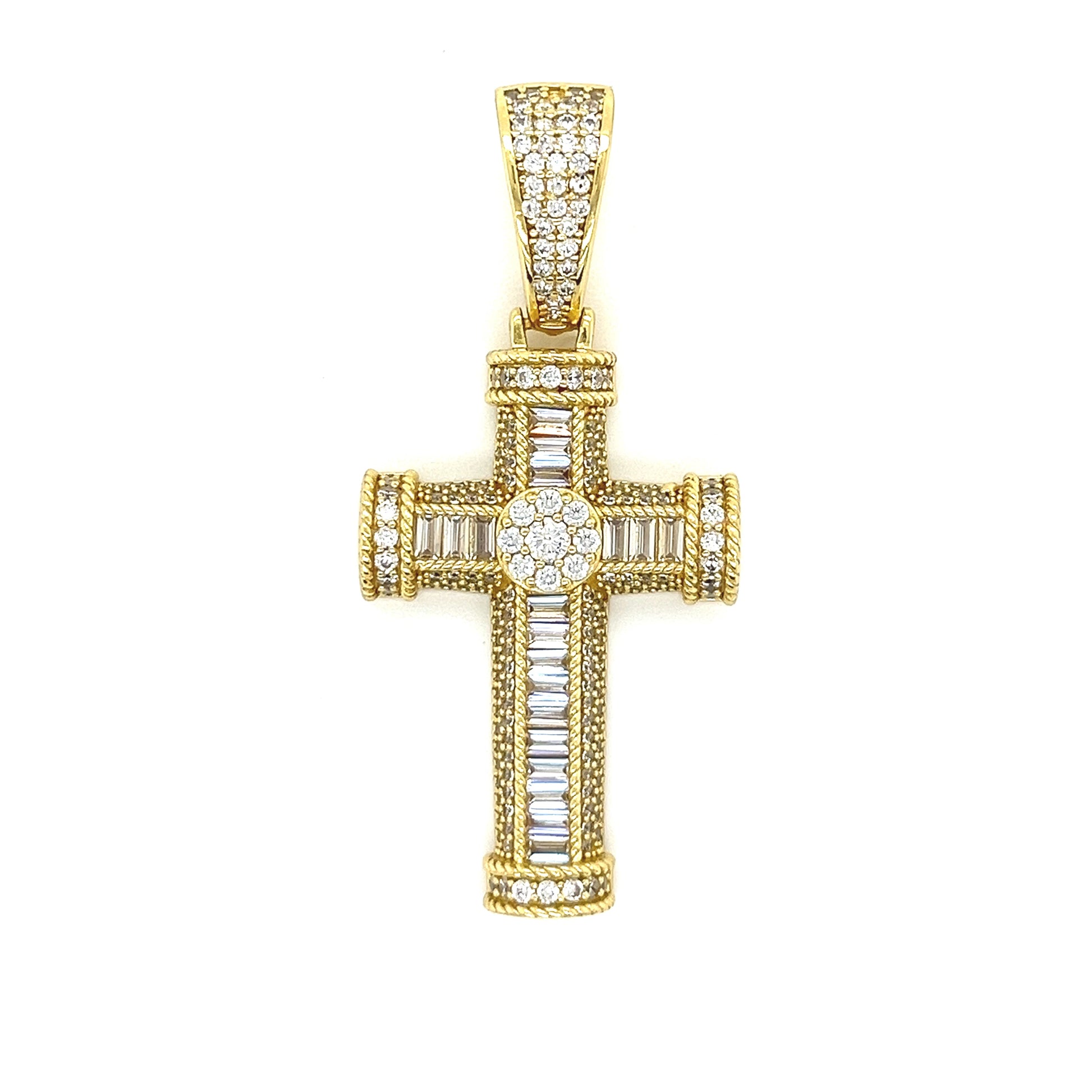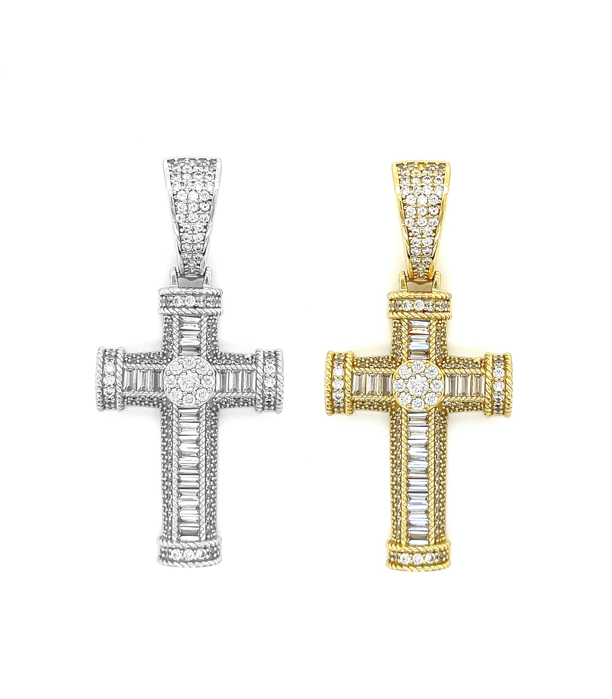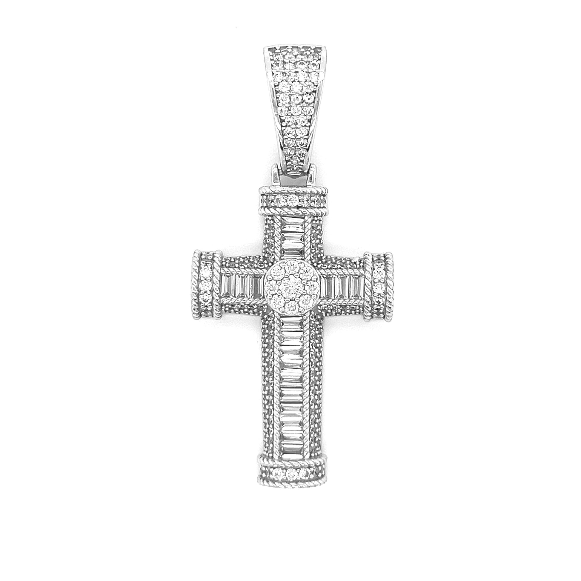 Impresionante colgante de cruz de circonita cúbica de rodio en plata de ley 925: eleva tu estilo con esta belleza atemporal. Con un colgante de piedras redondas de circonita cúbica (CZ) de 2 x 0,8 pulgadas (con fianza), añade un toque de glamour a cualquier look.
