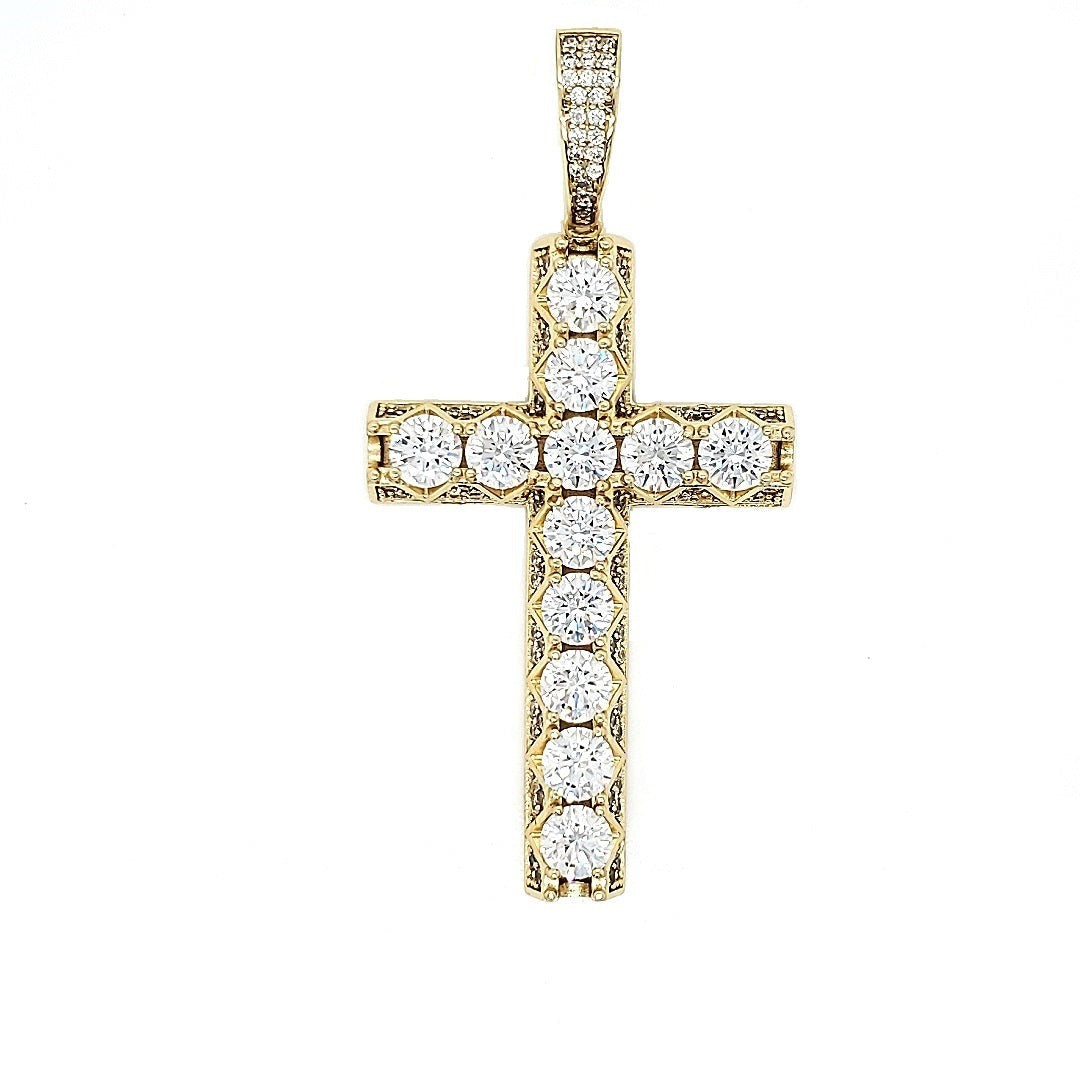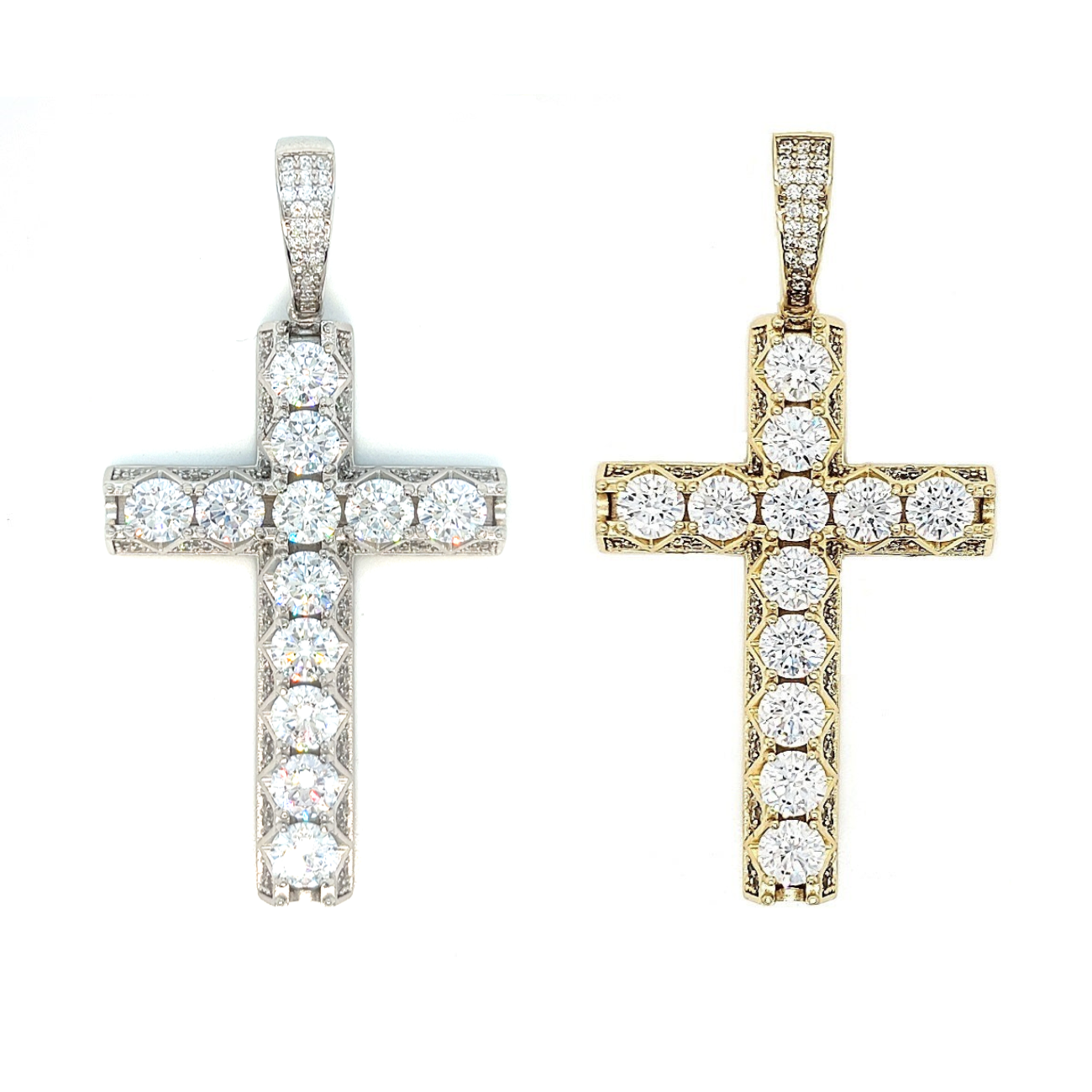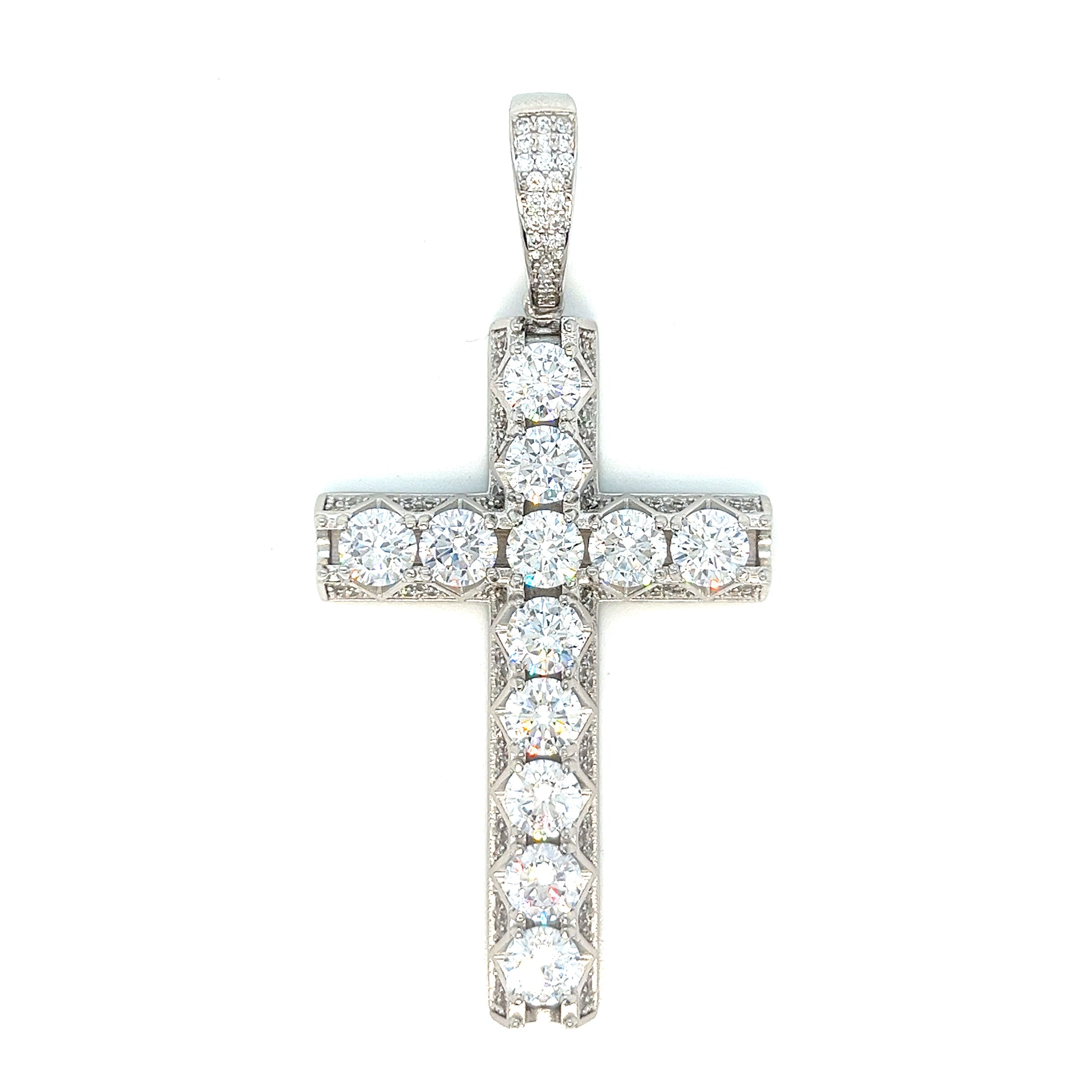 Colgante CRUZ de Plata de Ley 925 adornado con piedras CZ redondas. Diseñado para una durabilidad duradera y un estilo inigualable.