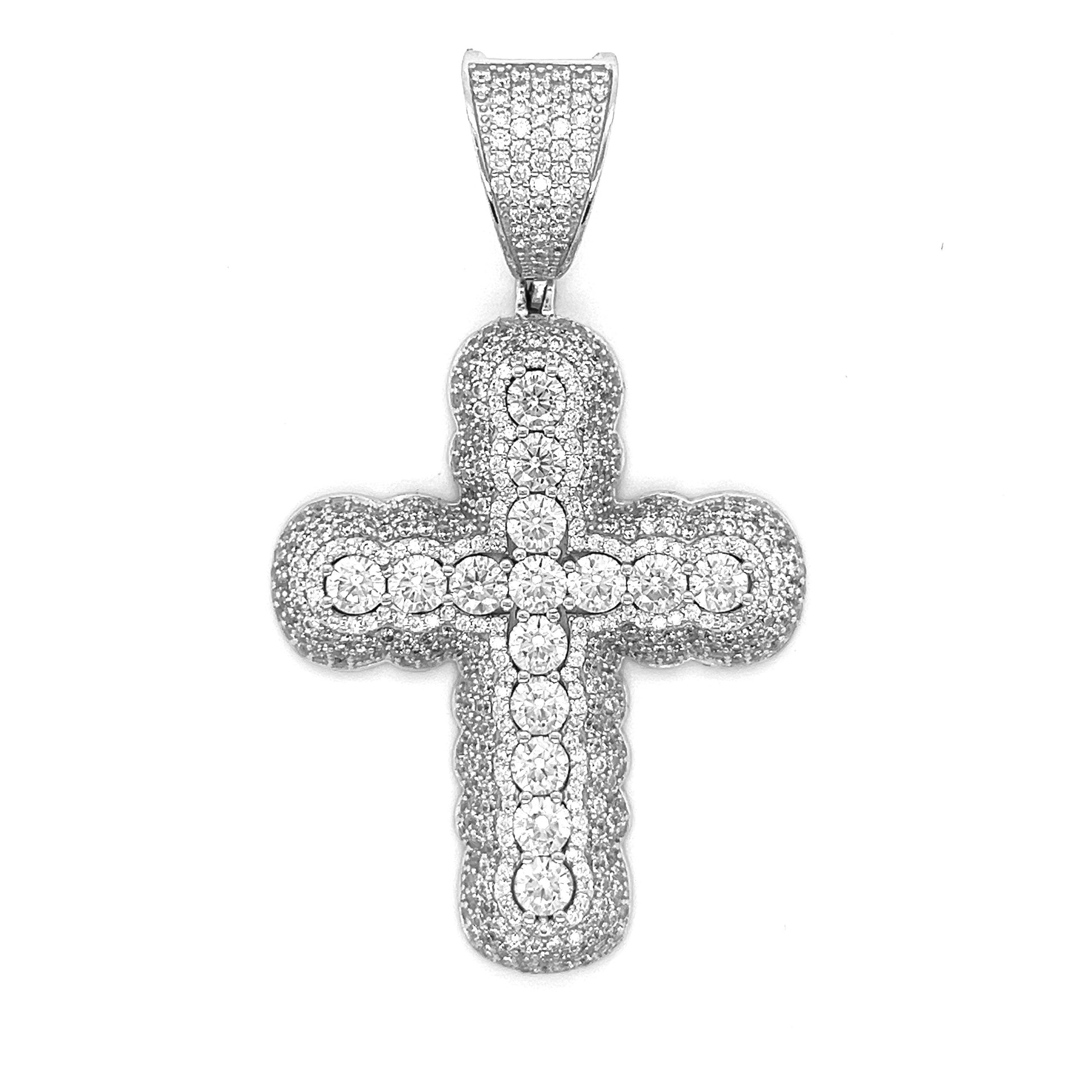 Impresionante colgante de cruz de circonita cúbica de rodio en plata de ley 925: eleva tu estilo con esta belleza atemporal. Con un colgante de piedras redondas de circonita cúbica (CZ) de 2 x 1,4 pulgadas (con fianza), añade un toque de glamour a cualquier look.
