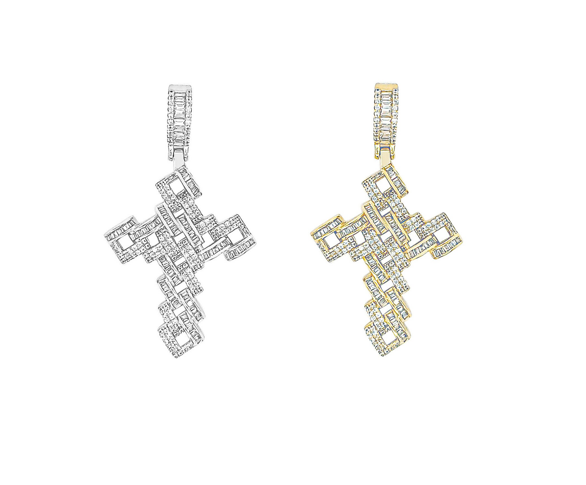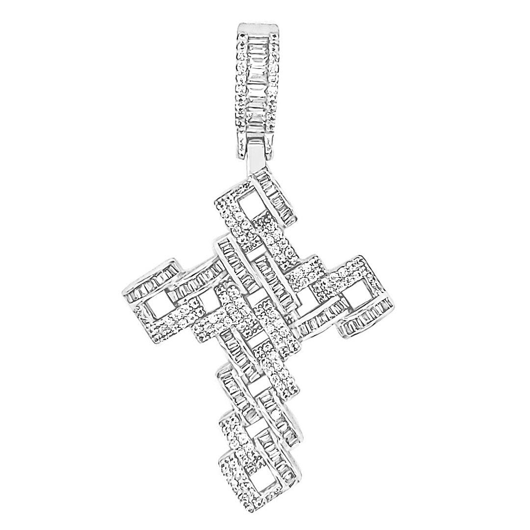 Impresionante colgante de cruz de circonita cúbica de rodio en plata de ley 925: eleva tu estilo con esta belleza atemporal. Con un colgante de 2,25 x 1,25 pulgadas (con fianza) de piedras de circonita cúbica (CZ) redondas y baguette, añade un toque de glamour a cualquier look.