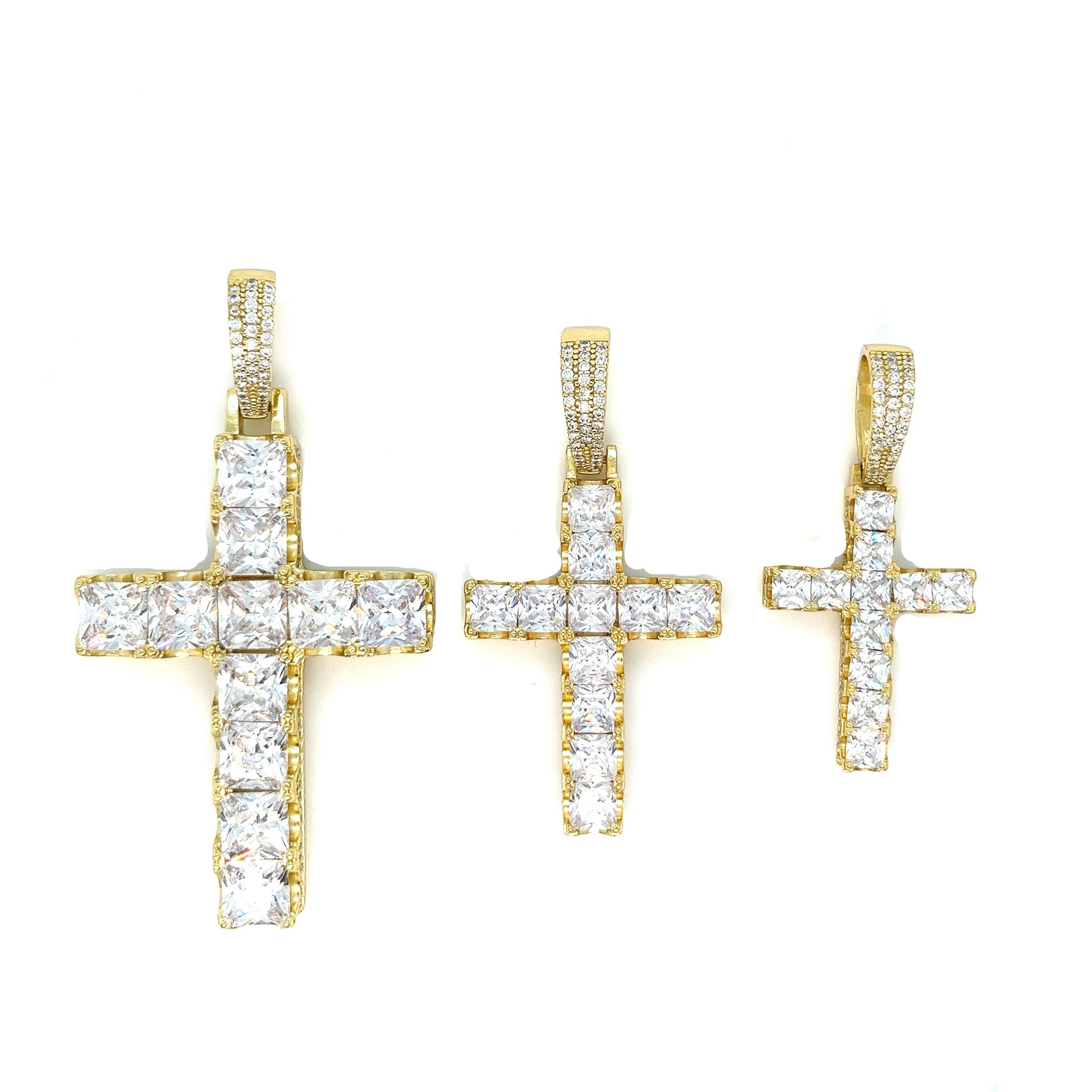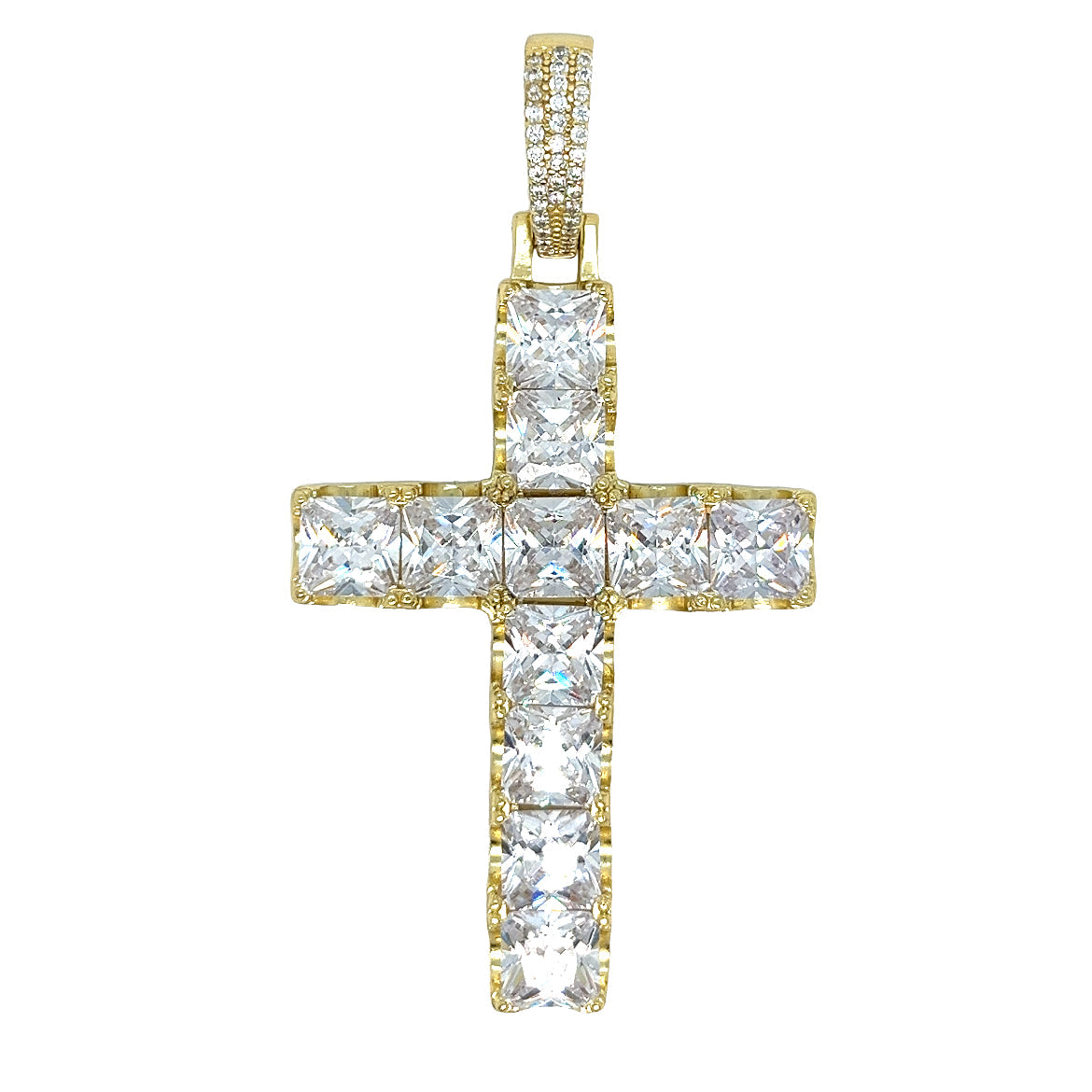 Colgante CRUZ de Plata de Ley 925 adornado con piedras CZ redondas y baguette. Diseñado para una durabilidad duradera y un estilo inigualable.