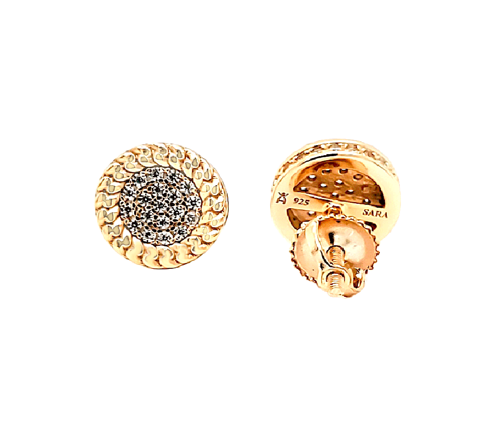 Pendientes de plata de ley 925 maciza auténtica chapada en rodio/acabado en oro amarillo de 14 quilates para hombres y mujeres, pendientes redondos de diamantes de imitación con rosca