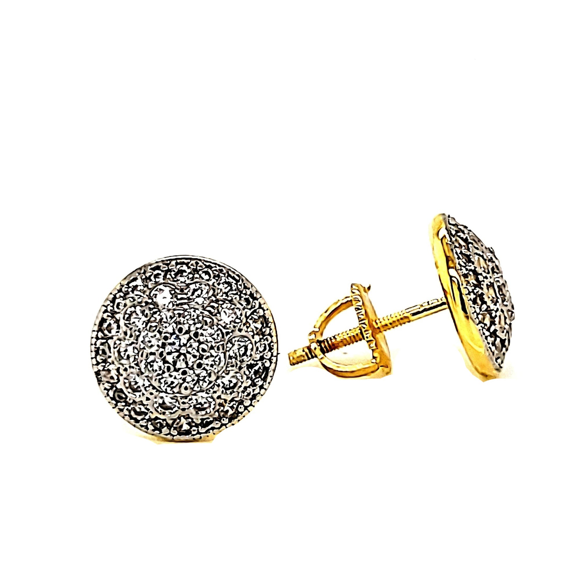 Pendientes unisex de plata de ley 925 maciza con acabado rodio, chapados en oro amarillo y rosa de 14 quilates, con forma redonda y circonitas cúbicas redondas.